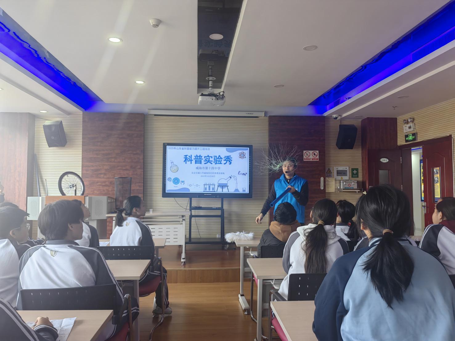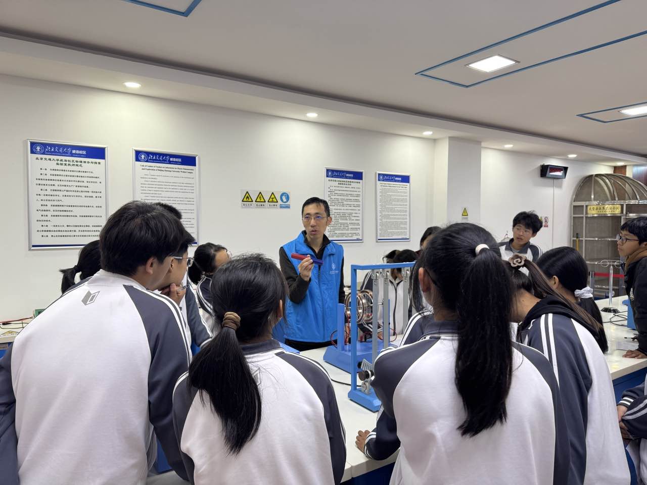 On October 30, 3 teachers and 60 students from Weihai No.14 Middle School visited the Popular Science Base of BJTU Weihai Campus. Five experimental teachers from the base received the visitors.