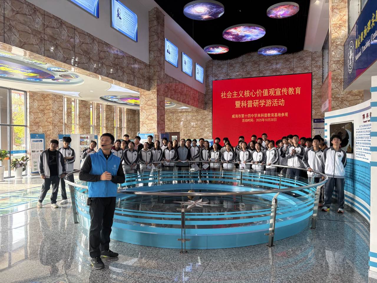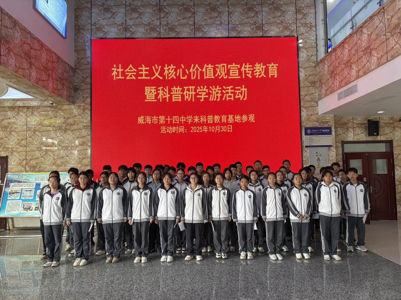 10月30日,来自威海市第十四中学的3名教师与60名学生来到威海校区科普教育基地参观。科普教育基地的5名实验教师接待了参观人员。