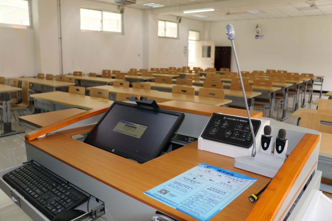 教室内均配备完备的软硬件设施,与新一代智慧教学平台(Learning at BJTU International)融合打通,颠覆了传统教学模式,实现了线上线下打通,课前课中课后全覆盖,实现了师生与教学资源、信息技术、教学环境的有机结合。