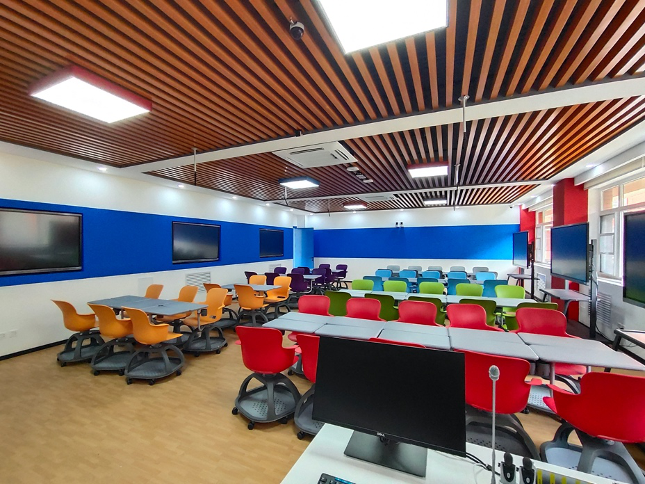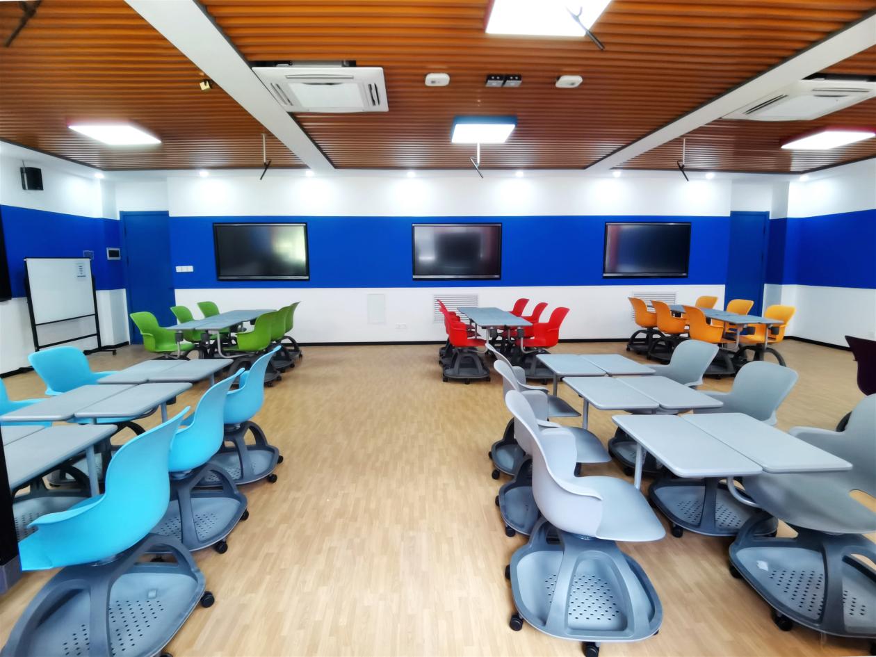 建成智慧教室22间,并全部投入使用,智慧教室里有完备的软硬件设施,可以实现按需更改教室桌椅布局、任意终端无线投屏、多屏互动和分组研讨教学、高清录播直播点播、视频会议、统一管控、一键呼叫、无感扩声等功能,同时把物联网引入到智慧教室,除了自动监测教室内温湿度、二氧化碳浓度、PM2.5值,还可以智能控制窗帘、空调、灯光、教学设备等的开关。
