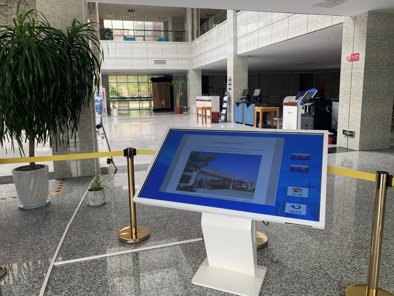 北京交通大学威海校区图书馆坐落在校园的中部,馆舍建筑面积约为1.8万平米,共四层,现已开放一至三层。现藏书76万余册,报刊380余种,阅览座位1500余个,周开馆112小时,校园无线网络全覆盖。设有藏书区、教材阅览室、阅读区、自由学习区、学生发展社区、研讨交流区、自助服务区、咖啡吧等功能性区域。