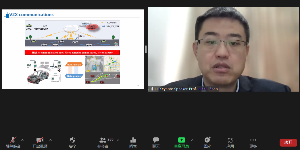 北京交通大学电子与信息工程学院教授、华东交通大学信息工程学院和人工智能学院院长赵军辉,进行了题为《5G车联网:计算和通信融合》(5G Vehicular Networks: The Fusion of Computation and Communication)的主题报告。