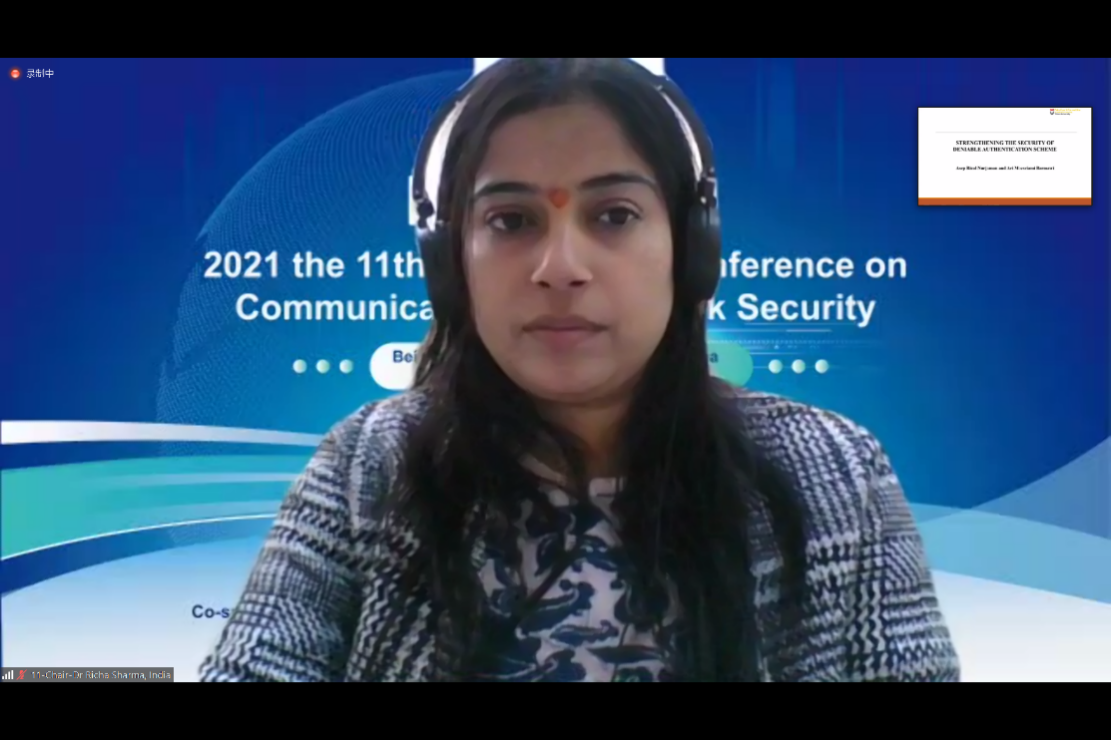 4日下午和5日上午,会议进入分会报告和讨论环节,参会作者围绕“通信与信息安全”和“先进信息技术和管理”主题进行探讨,此环节分别由印度JK Lakshmipat University的里查·夏尔马(Richa Sharma)博士和承担北京交通大学威海校区中外合作办学教学工作的信息与通信学科陶成教授,以及南京理工大学许春根教授和承担北京交通大学威海校区中外合作办学教学工作的信息与通信学科梁亚楠博士主持。