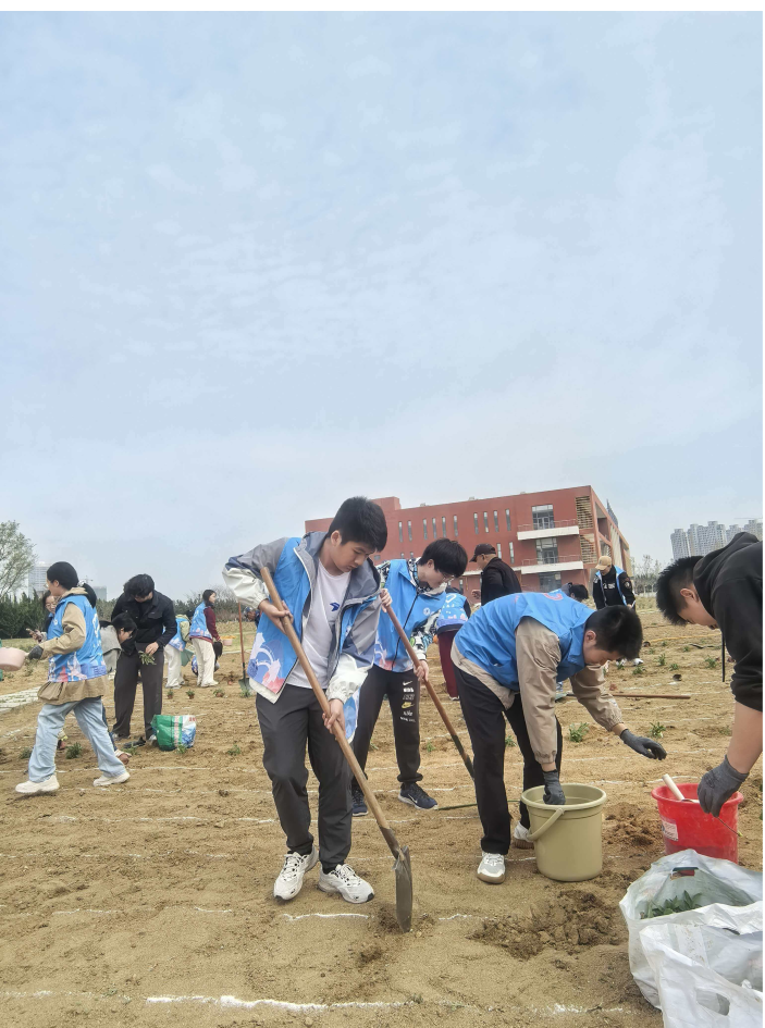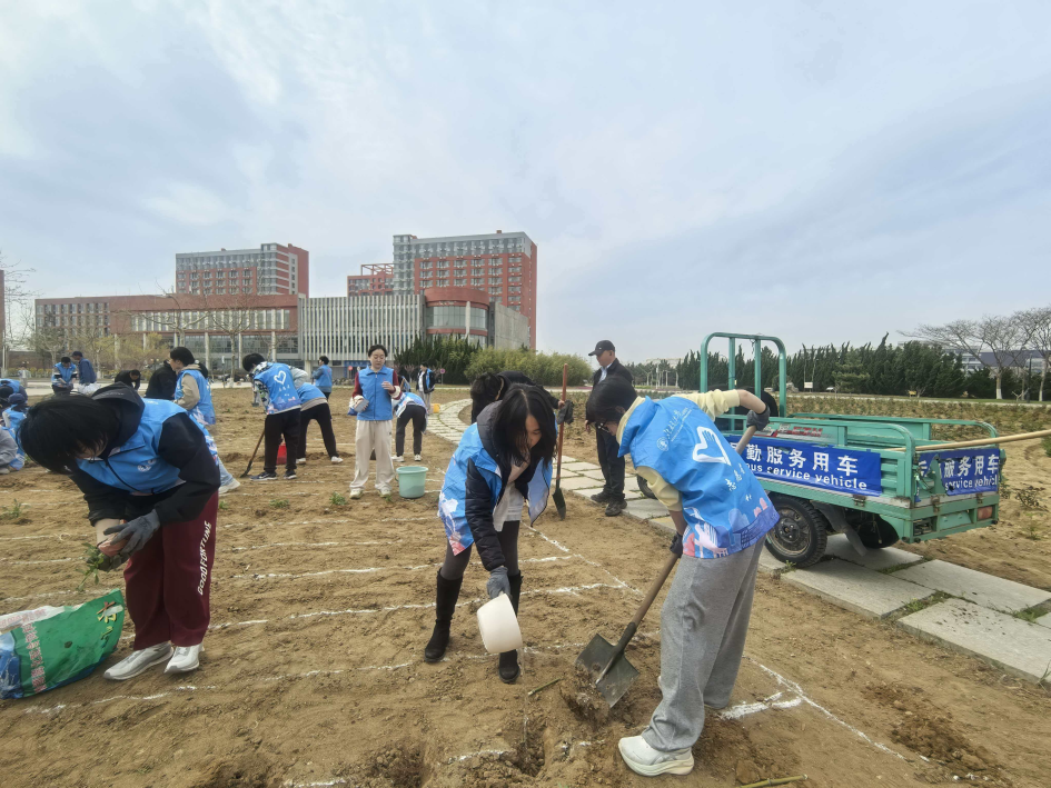 4月2日,组织月季栽种活动,师生齐心协力,累计种植月季3300株。4月16日,又开展金鸡菊栽种活动,累计种植金鸡菊3600株。两场花海种植活动共吸引近百名师生踊跃参与。活动中,后勤部工作人员先后对月季花和金鸡菊的品种特点、景观寓意进行了介绍,并详细讲解了松土、栽植间距、播种深度、浇水要点等种植技巧,同时强调了工具使用规范等安全注意事项。两场活动期间,同学们热情高涨,分工协作,丈量株距、铲土施肥、扶苗覆土,现场井然有序,师生们用双手为校园增添生机与色彩。