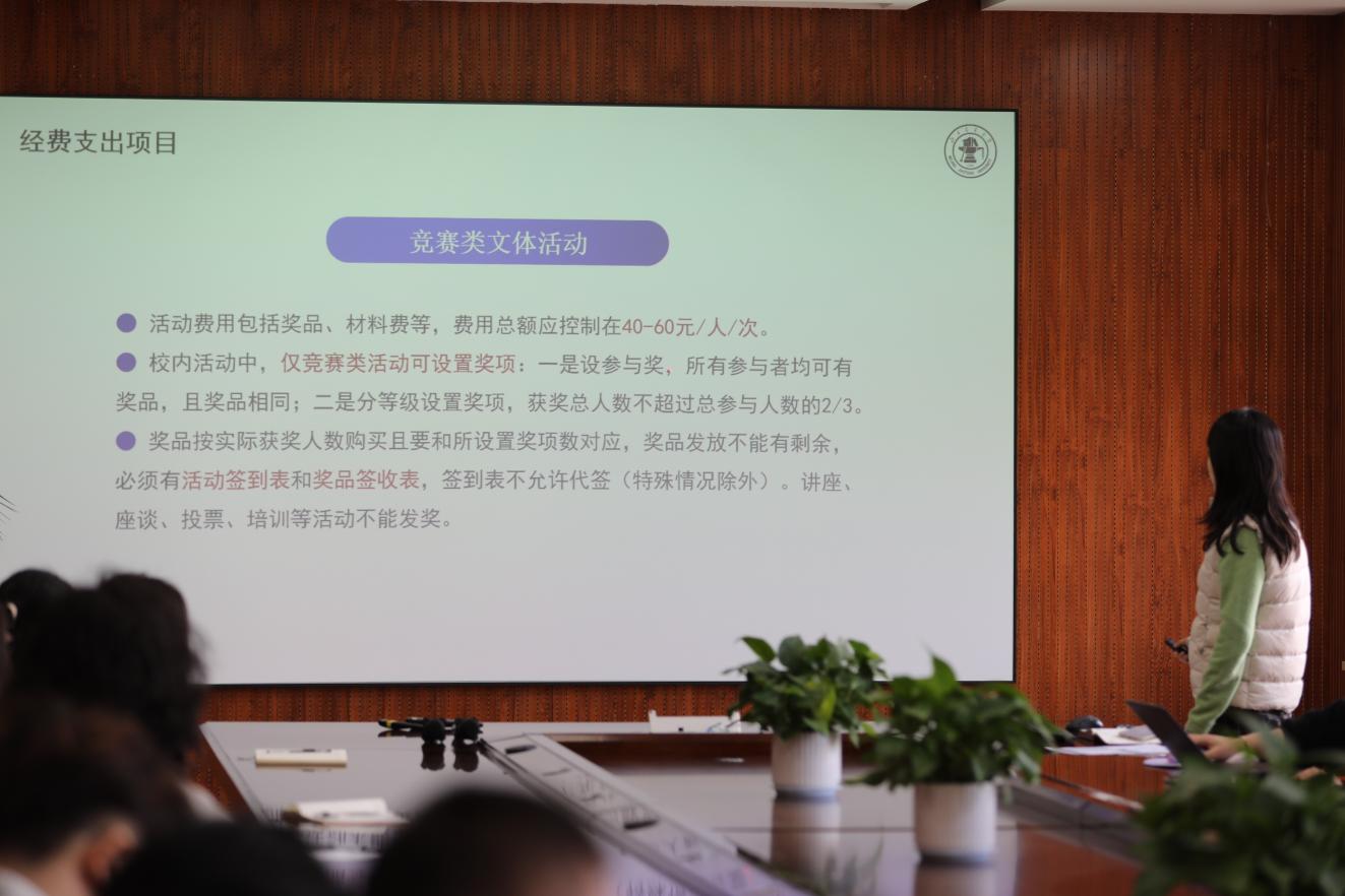 沙相宇结合实际工作,从机构设置、工作交流、原则规范等方面为大家详细介绍了校区工会的工作机制、阵地建设、预算经费、活动开展、工作原则、评优评先及小组长岗位职责,让大家对校区工会的整体运作模式有了更为清晰和全面的认识,为后续高效开展工作筑牢基础。