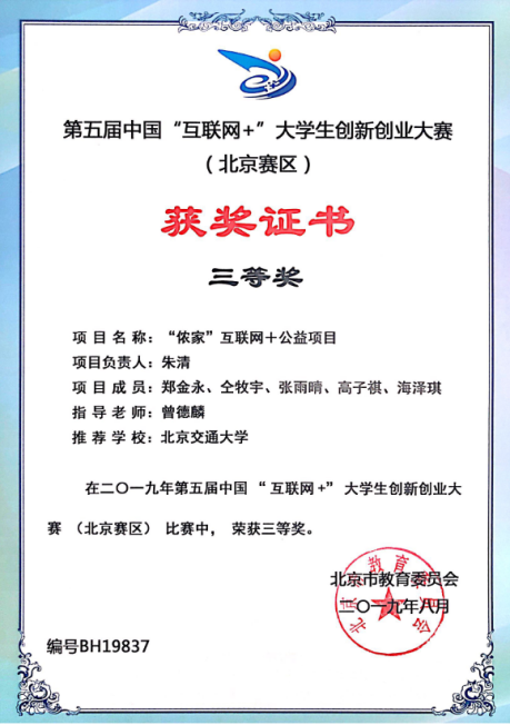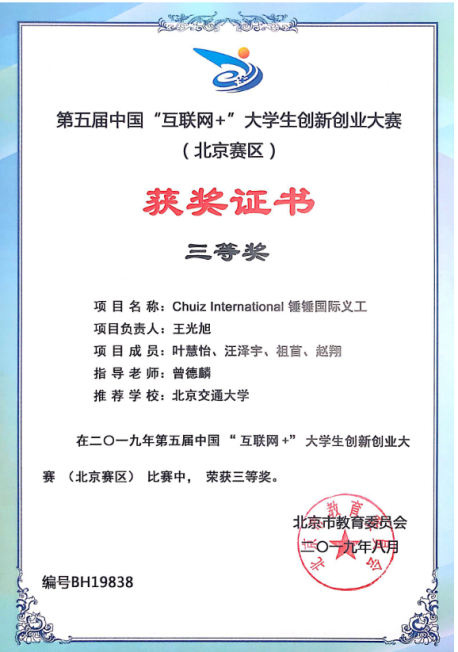 China College Students' 'Internet+’ Innovation and Entrepreneurship Competition responds the topic "Internet+ to achieve dreams, innovation and entrepreneurship, and open up the future”. It is co-sponsored by the Ministry of education and the relevant ministries and the government of Jilin province. The competition aimed at deepening the comprehensive reform of higher education, stimulating the creativity of university students, cultivating the main force of "mass entrepreneurship and innovation", promoting transformation of competition results, promoting the formation of new formats of "Internet plus", improving service quality, enhancing efficiency and upgrading efficiency, leading innovation and Entrepreneurship to employment, and promoting higher quality employment and employment of college graduates.