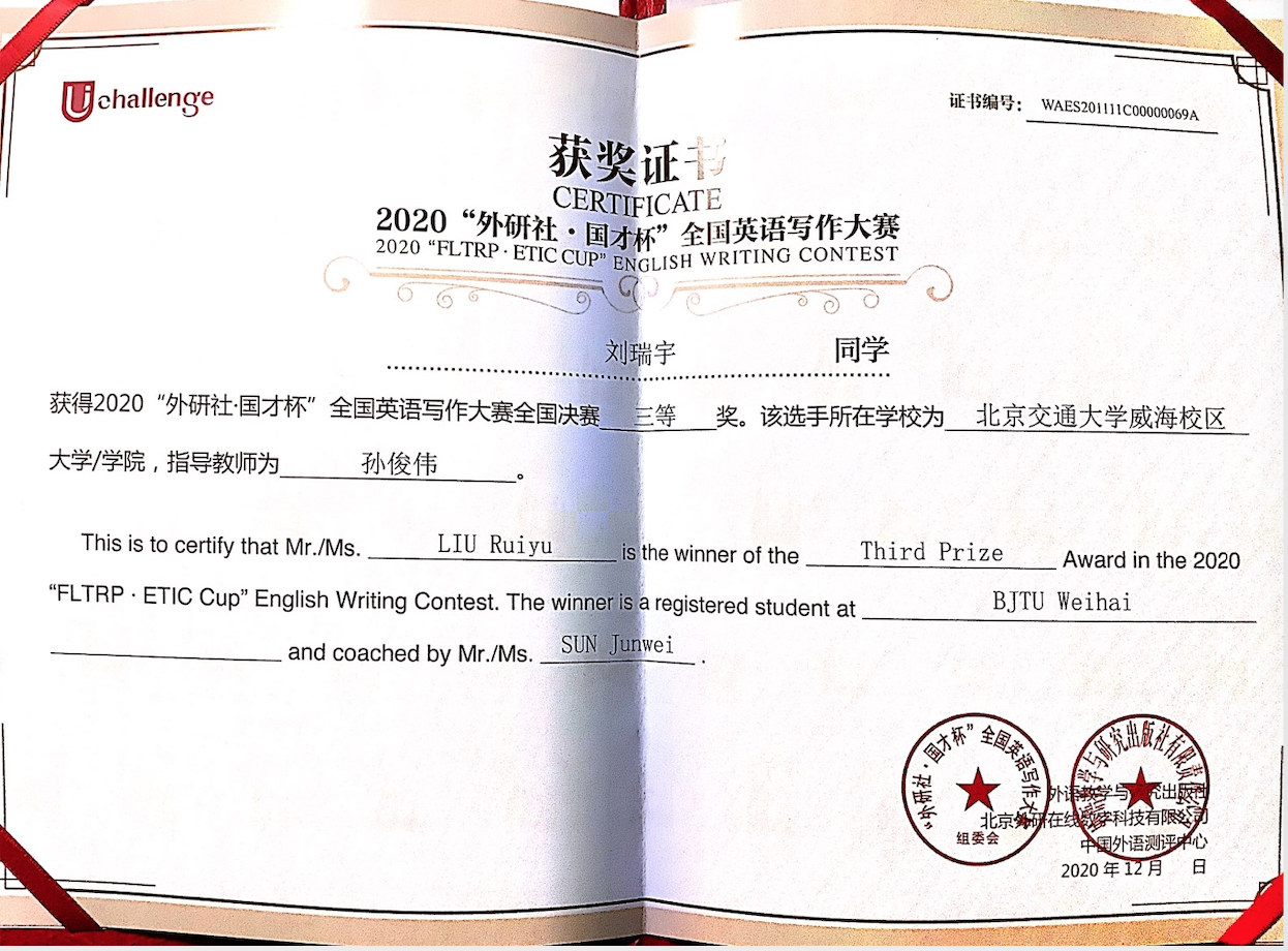 FLTRP Cup English Writing Contest is jointly organized by the Foreign Language Teaching and Research Press, the Ministry of Education College Foreign Language Teaching Guidance Committee and the Ministry of Education College English Teaching Guidance Subcommittee, It is a public welfare for college students across the country.