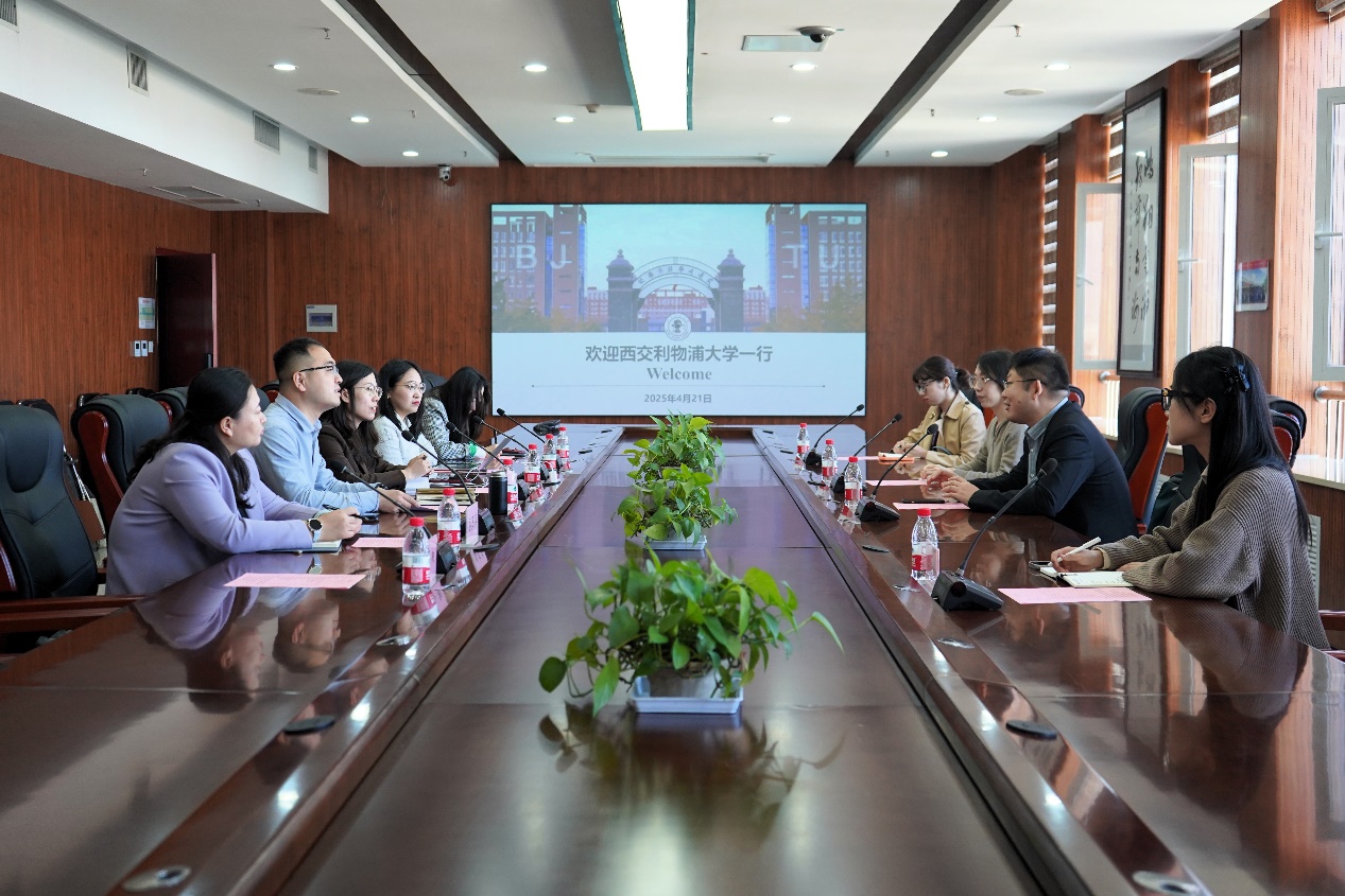 On Apr 21, a four-member delegation from Xi'an Jiaotong-Liverpool University (XJTLU), led by ZHOU Xiaocheng, Party Branch Secretary of the Smart Engineering School, visited Weihai Campus for a collaborative exchange and symposium. The delegation was received by LIN Wanliang, Deputy Party Secretary and Discipline Inspection Commission Secretary of the campus, alongside MA Xiao, Director of Student Affairs and Services Office, and GU Yuying, SUN Junwei, LIU Guitong.