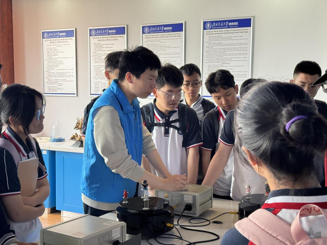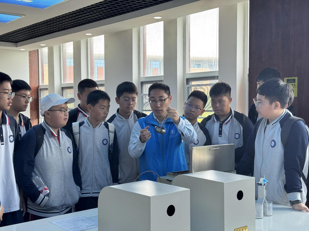 On May 22, Zhou Junwei, the head teacher of the experimental class of Weihai Wendeng Jinshan Middle School, and 3 other teachers have led 45 students to visit the Popular Science Base of BJTU Weihai Campus. Five technicians received the visitors.