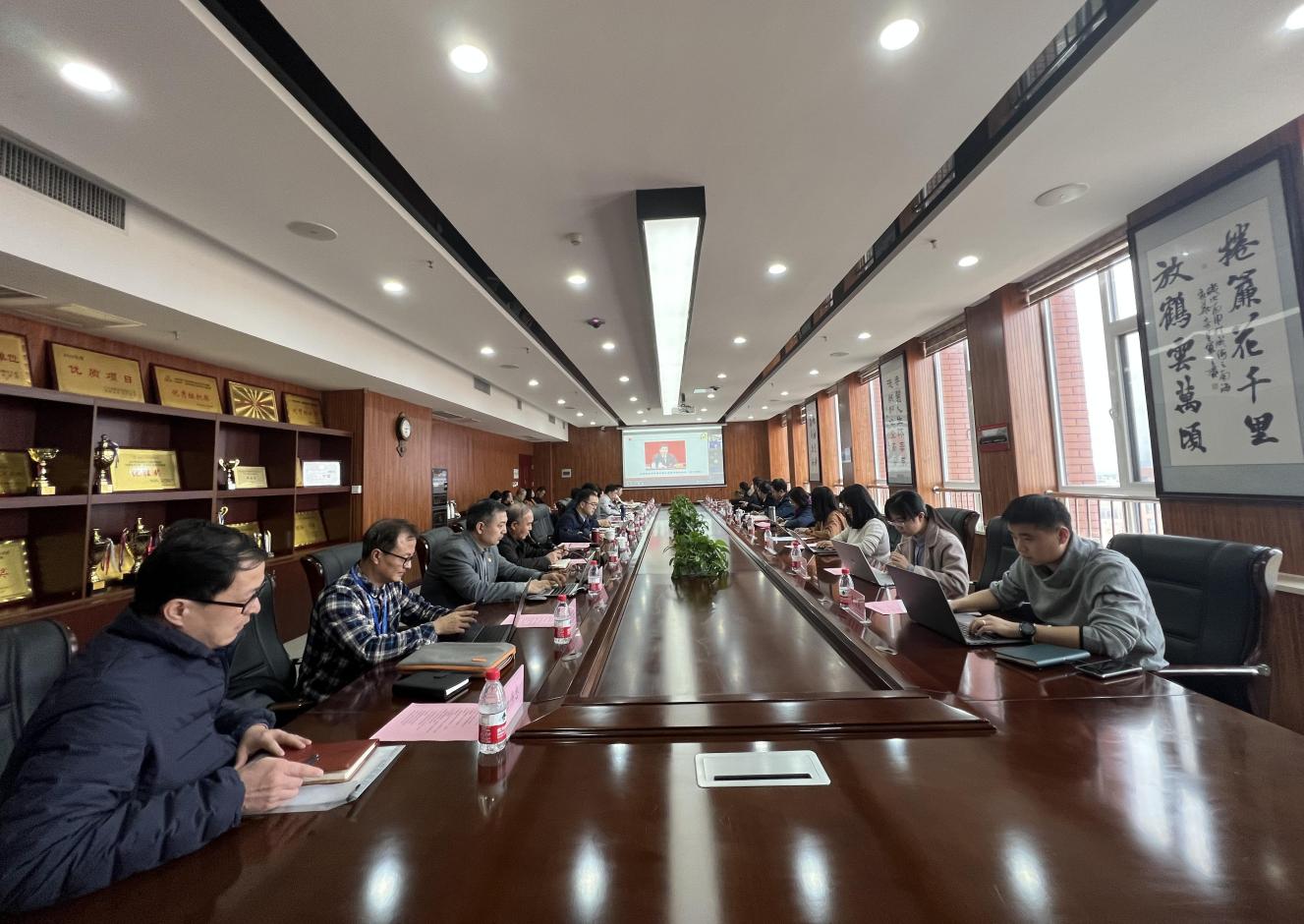 12月9日,威海校区组织召开中心组学习扩大会议,学习贯彻十九届六中全会精神。北京交通大学原党委副书记、原纪委书记,教授、博士生导师颜吾佴通过线上作学习党的十九届六中全会精神的专题报告。威海市教育局副局长、党组成员、市委教育工委委员邵海东列席会议,因疫情原因,北京交通大学宣传部副部长张安梅、文化及综合办岳成龙、党史学习教育小组黄时萌通过线上巡听旁听,威海校区党委书记孙文博、威海国际学院院长刘颖等中心组成员,校区全体中层干部参加会议。