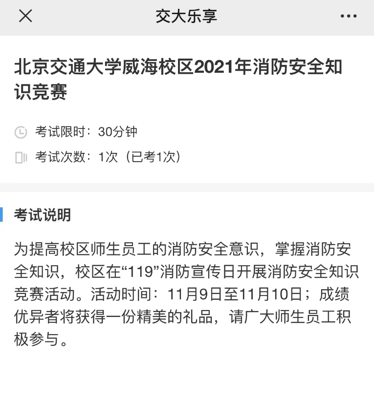 总务管理办公室组织师生员工进行线上消防安全知识竞赛活动,约300人参与完成了答题。