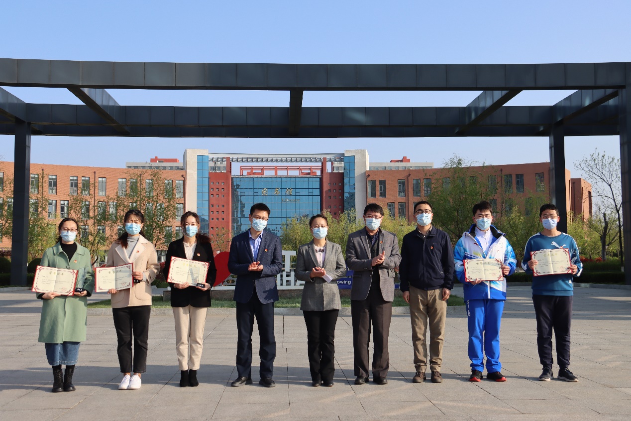在五四青年节到来之际,校区开展了2021-2022学年北京交通大学威海校区五四奖章评选工作,经学生个人申报、部门推荐,校区团委组织评选和党委审议,评选出5名校区“五四奖章”获奖者,分别是投身校园疫情防控一线,关爱生命、关爱健康的后勤服务与保障部常春艳,在财务出纳岗位工作细致、认真履职的计划与财务部曲艺,关心关爱学生、引导学生成长成才的学生发展与服务部刘贵彤以及交大研究生支教团成员、2022年冬奥会志愿者谷宇浩,2019级通信专业第一、国奖、校自强之星获得者张金岩。李香山、林万梁为获奖师生颁奖。