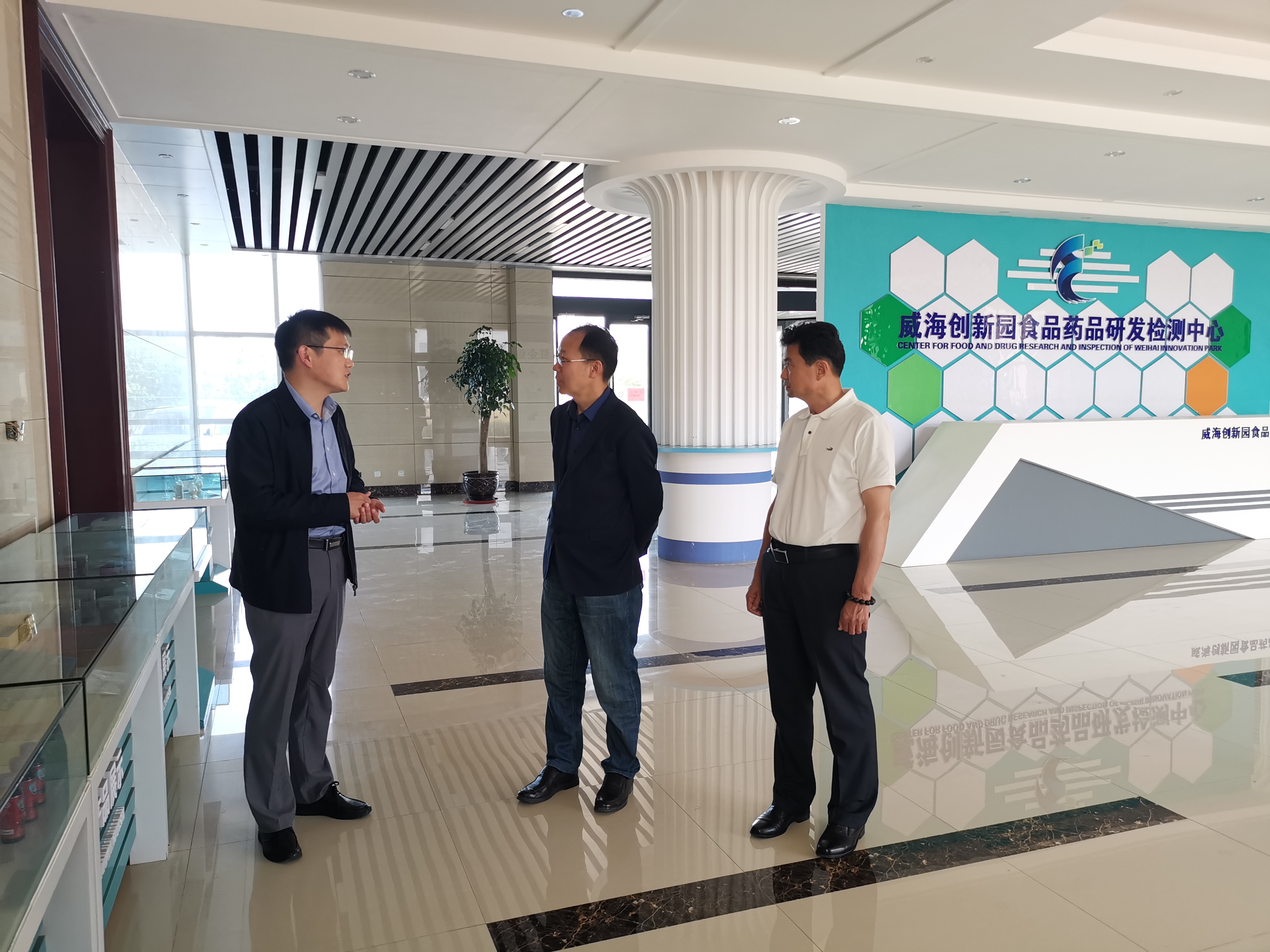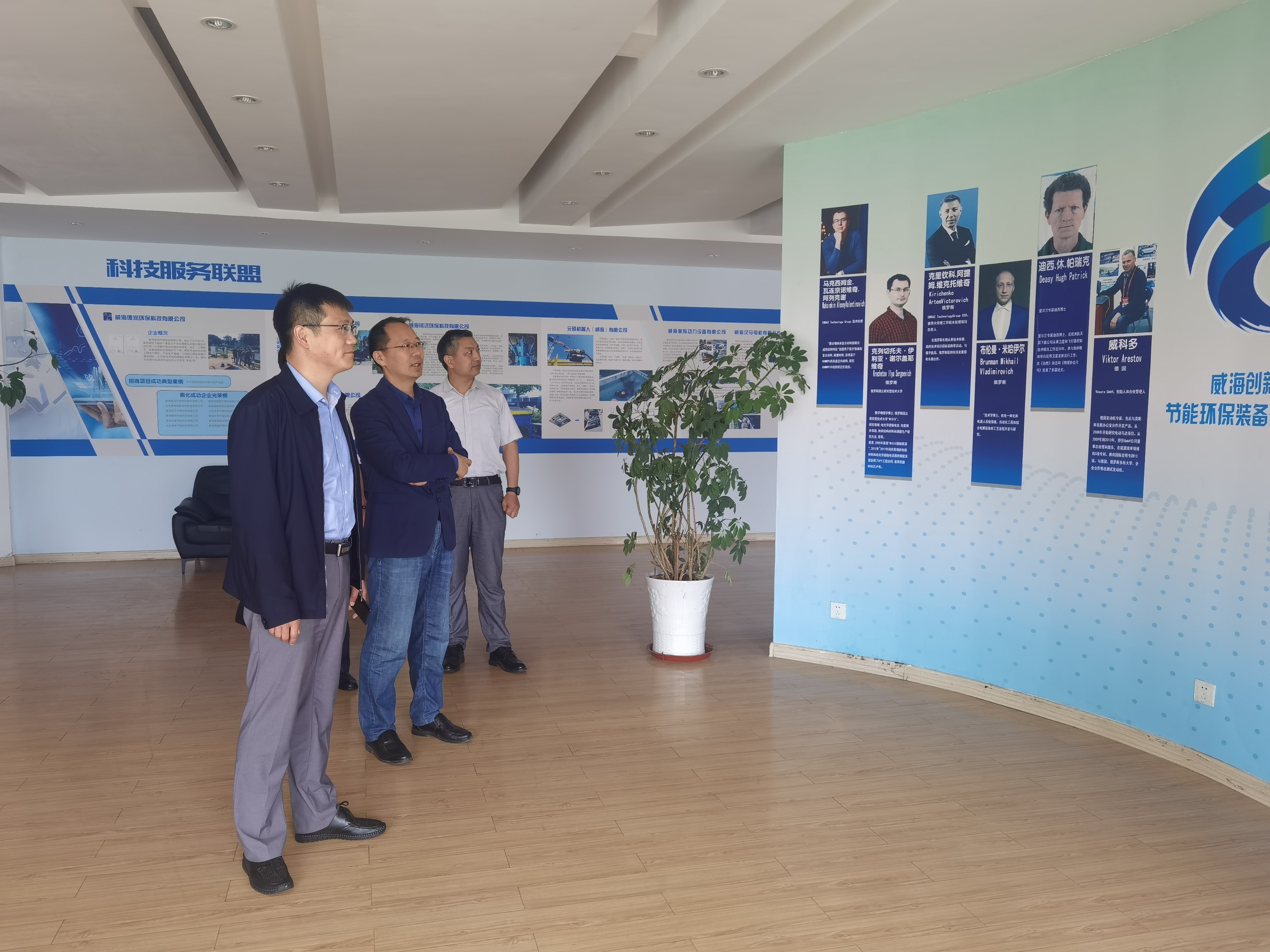 在威海创新园环保节能装备研究中心调研期间,山东威海中创国际贸易有限公司董事长、威海吉大新能源汽车研究院有限公司法人代表、环保节能设备研究中心和食品药品研发检测中心CEO路建统,和威海创新园环保节能装备研究中心、威海蓝玻创业园运营管理有限公司董事长韩怀坤等热情接待,并引领参观了两个中心。