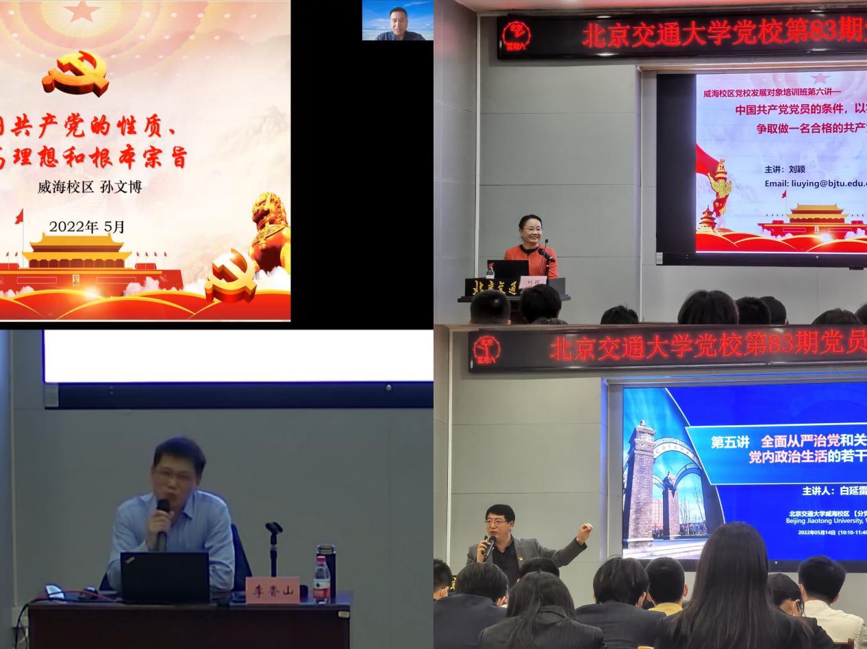 为深入学习贯彻习近平新时代中国特色社会主义思想,切实加强对党员发展对象的培养、教育和管理,确保新发展党员的质量,根据学校党委统一部署,5月8日-5月15日,北京交通大学党校组织第八十三期党员发展对象培训班暨威海校区分党校第十二期党员发展对象培训班。校区共77名发展对象参加了本期培训,培训班以自学、专题讲座、主题研讨和主题实践等形式展开。