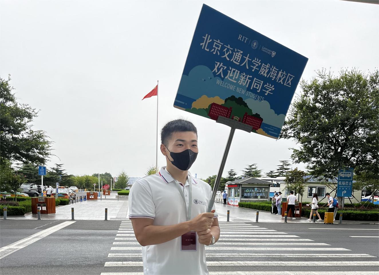 校区安排教工志愿者在威海国际机场和威海站迎接新同学