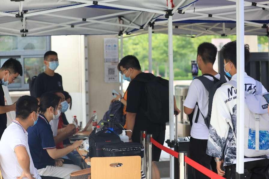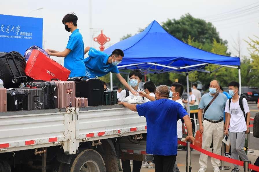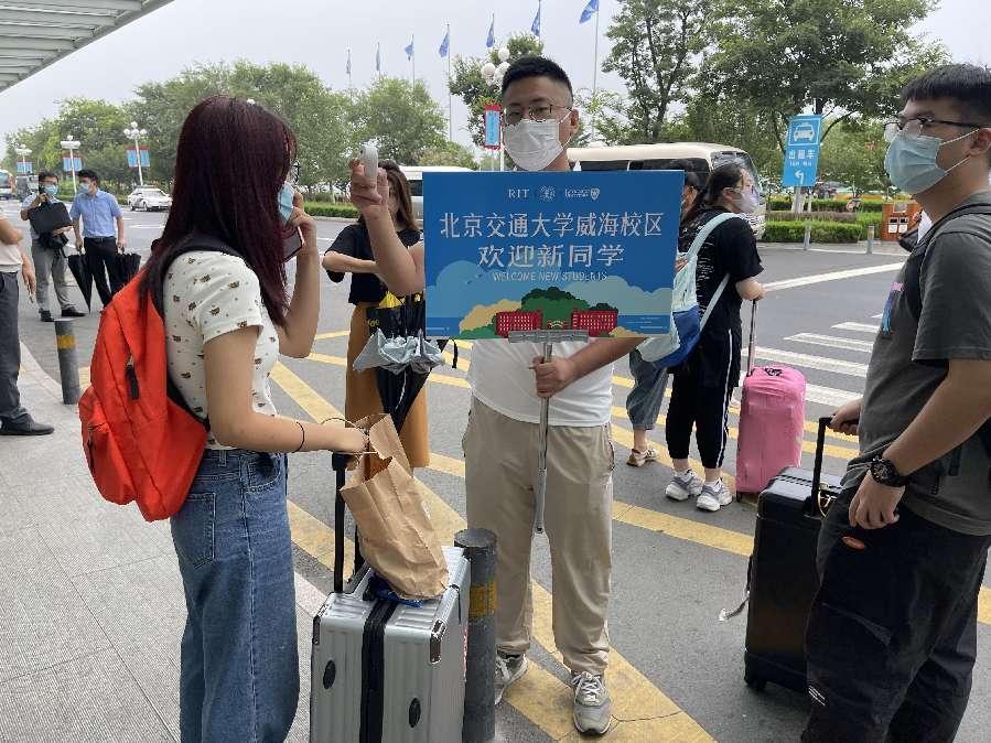 校区提前对入校新生进行审批,并在威海国际机场、威海站设置了两个新生接站点,安排教职工志愿者迎接新生到来。