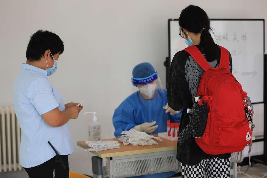新生到达后,在门口进行体温检测、身份核验、健康码和行程码、入校前48小时核酸检测阴性证明等查验后,方可进入校区,入校后即刻进行核酸检测。