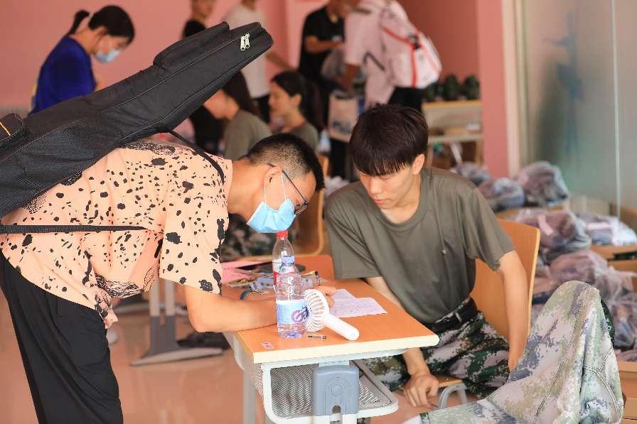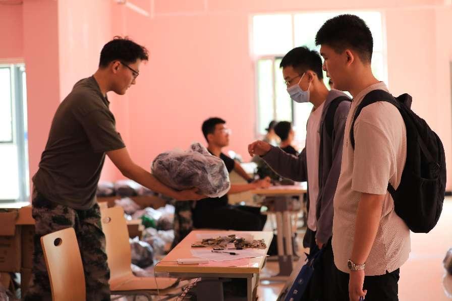 在图书馆办理报到手续后,到公寓配楼领取军训服和行李,并前往所在公寓楼办理入住手续。
