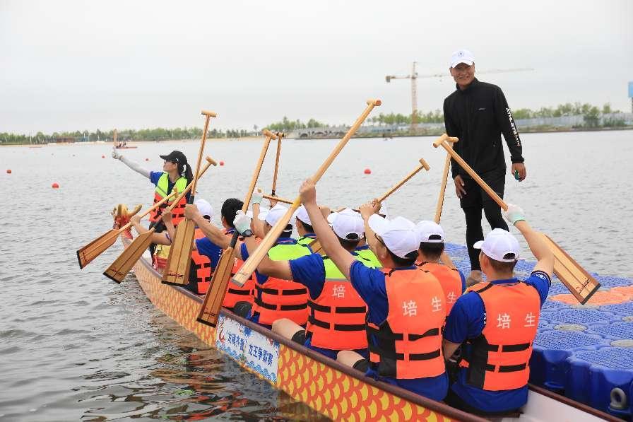 6月3日端午节,北京交通大学威海校区龙舟队派出了教工队和学生队两支队伍参加威海南海新区第二届“龙腾齐鲁”龙王争霸赛,通过200米、400米预赛和决赛的角逐,最终获得了200米项目的冠亚军和400米项目的冠军。