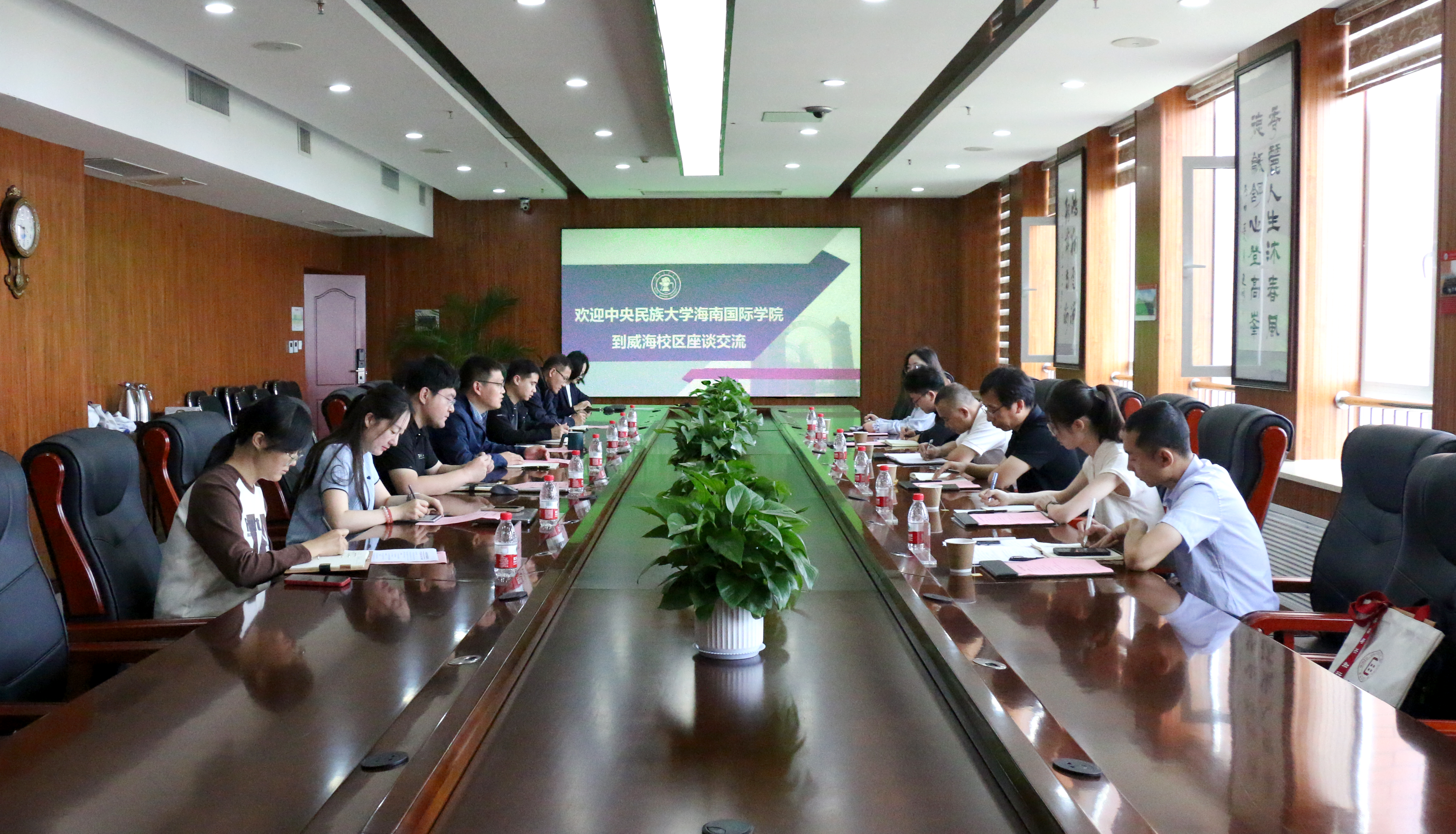 On May 29, Minzu University of China Hainan International College paid a visit to Weihai Campus to exchange work experiences on Chinese-foreign cooperative education.
