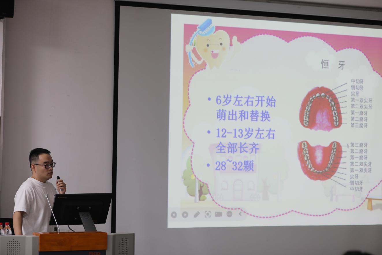 九三学社文登支社社员、文登整骨医院创伤关节科副主任李立以《中医小白必看:太极图才是隐藏的游戏攻略》为主题,解读了太极图与中医养生和中医理论起源的关联,帮助师生们理解中医整体观念与防病思路。威海市中心医院口腔科医生于磊为师生们系统讲解了口腔常见疾病的预防措施、日常口腔护理方法,以及口腔健康与全身健康的关系。