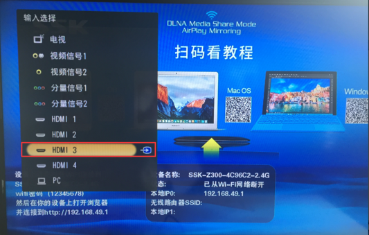 2、按照您选择的输出接口HDMI或者VGA在显示器上选择对应信号源,这里以HDMI为例子、选择了HDMI3,在显示器上选择它输入就好了。