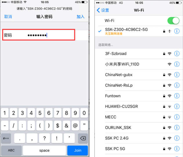 4、苹果手机连上推屏wifi,密码默认为12345678。
