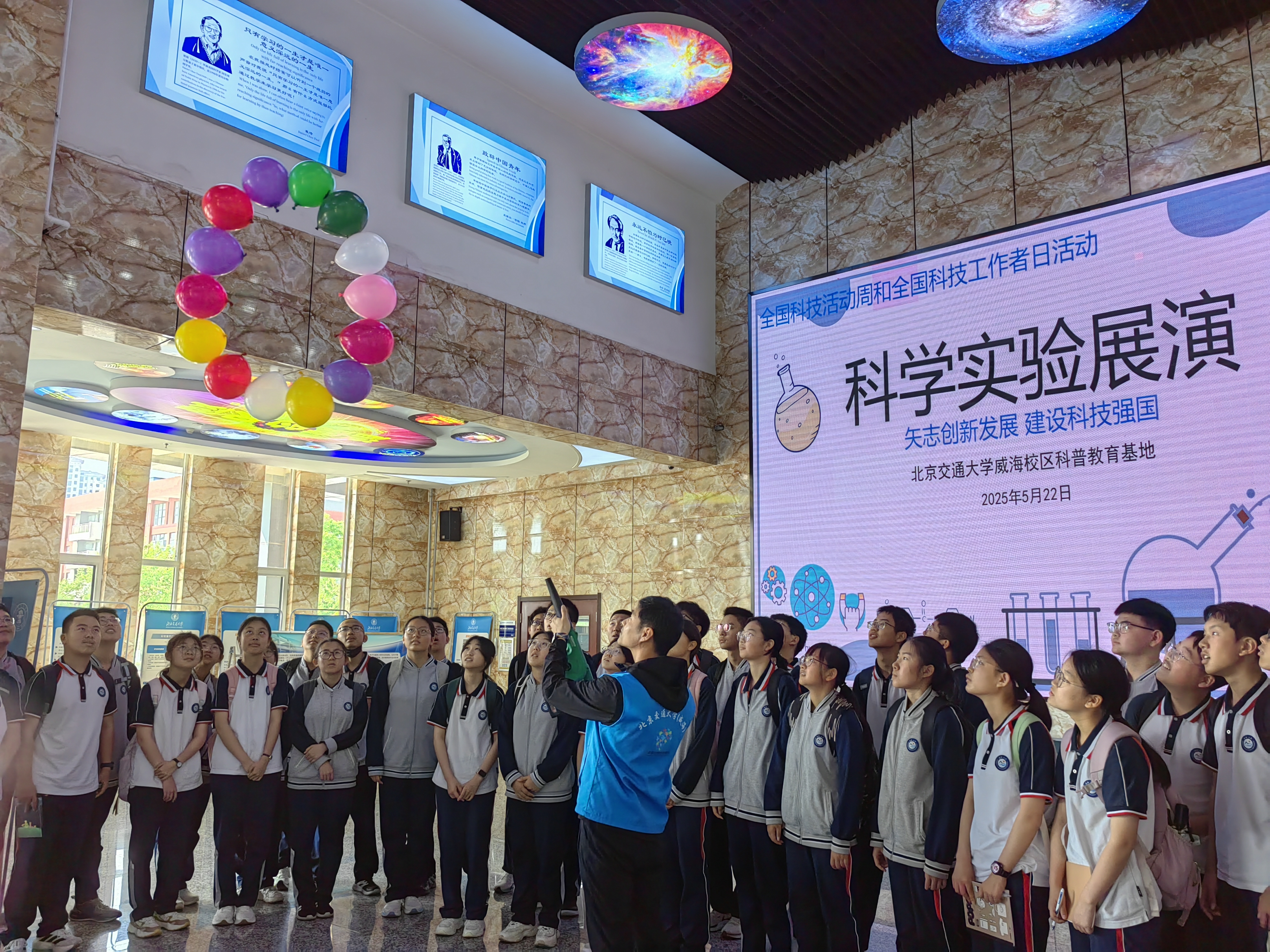 On May 22, Zhou Junwei, the head teacher of the experimental class of Weihai Wendeng Jinshan Middle School, and 3 other teachers have led 45 students to visit the Popular Science Base of BJTU Weihai Campus.