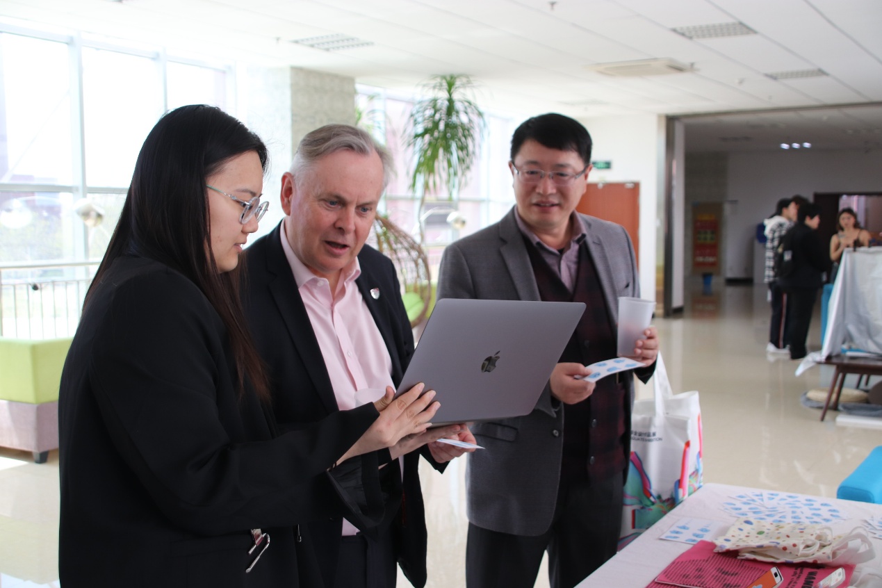 访问期间,Simon Guy一行还与北京交通大学兰卡斯特大学学院各年级学生及全体教师座谈交流,深入了解学院运行与师生发展情况。4月25日上午,来访代表团出席了在北京交通大学威海校区图书馆举行的“多棱镜:MULTIFACETED PRISM”——2025届数字媒体艺术专业毕业设计作品展开幕式,与嘉宾、师生共同见证青年创作者的精彩表达。