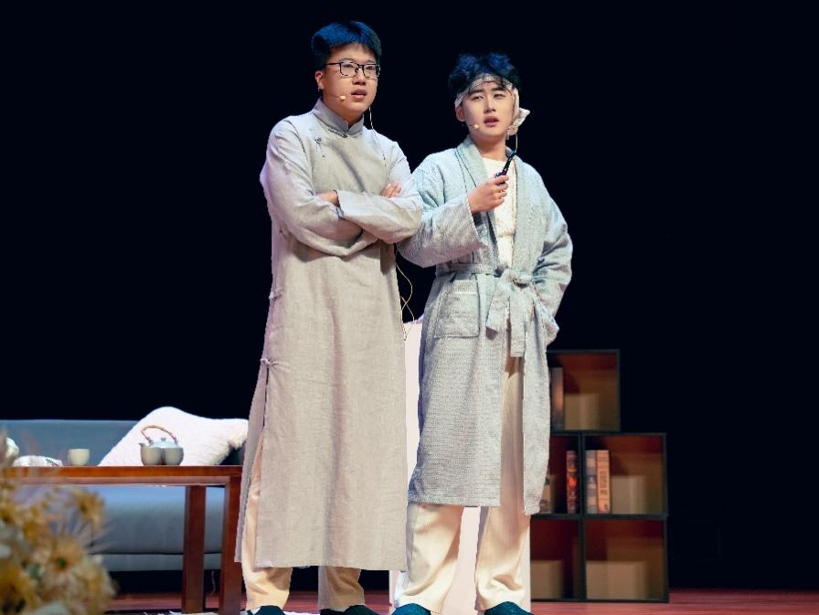 话剧《瞎了一只眼》作为开场节目,以民国为背景,通过先生、太太与朋友之间“善意的谎言”,探讨了亲密关系中爱与包容的深刻命题。演员细腻的表演,在时空的裂缝中窥见人性的温暖,传递出“每个人都是一座孤岛,而爱与包容便是连接孤岛的桥梁”的温情哲思,让观众在轻松明快的氛围中感受情感间的链接。