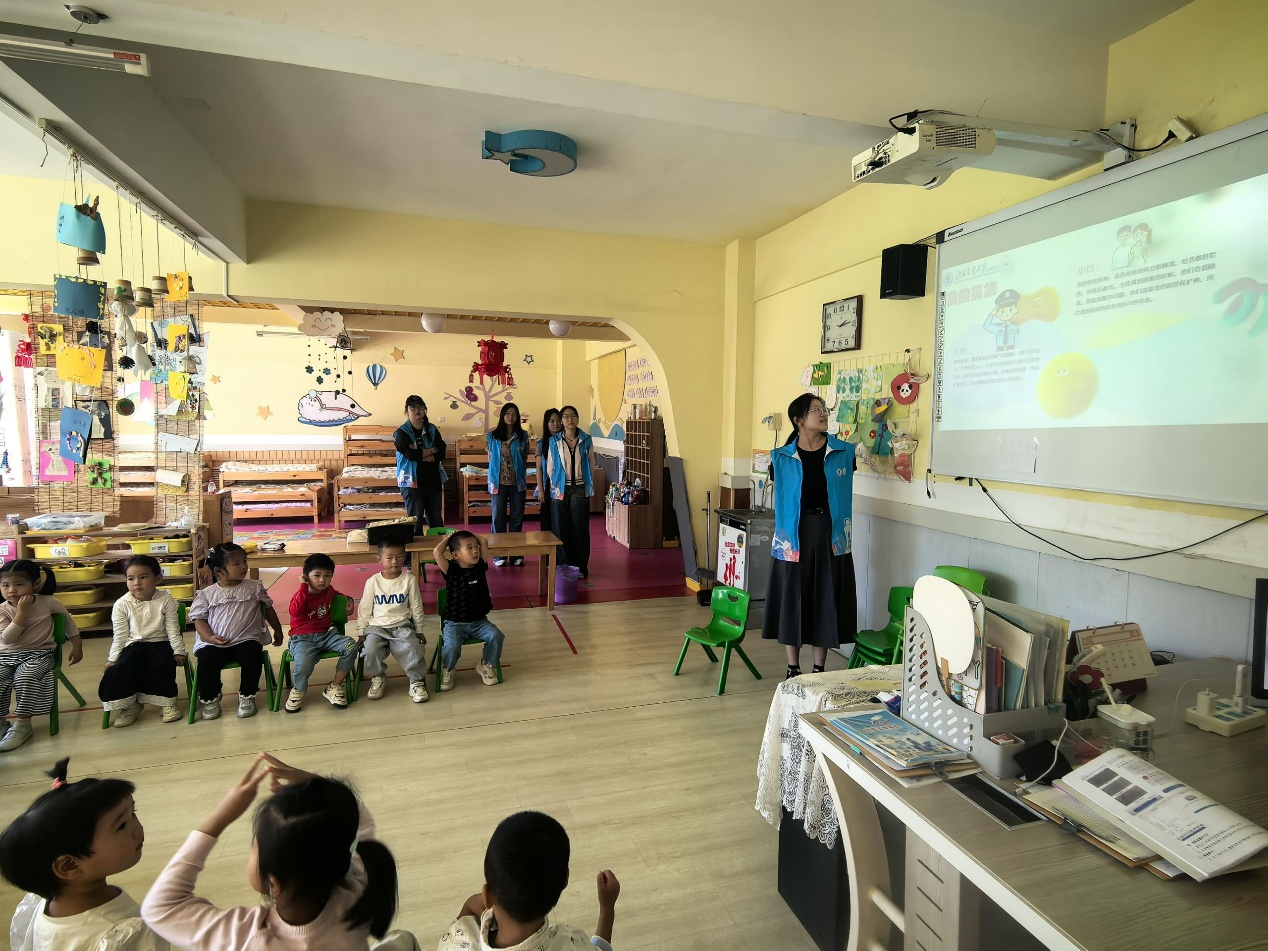 志愿者分为六组分别进入大班、中班、小班共六个班级进行“我是小小接班人”爱国宣讲,为南海幼儿园的小朋友们进行了以纪念9·18事变为主题的讲解。讲台上,志愿者们为小朋友们讲述着英雄的故事;台下,幼儿园小朋友们坐姿端正,懵懂而又好奇地听着哥哥姐姐们的讲解。小课堂之外,各岗位志愿者坚守在自己的工作岗位上,有条不紊地保障活动顺利进行。