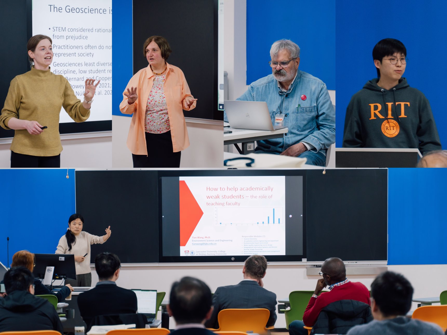 2025年10月30日,北京交通大学威海校区教师发展中心成功举办了第三届教学主题研讨会。本届研讨会汇聚了13位中外教师,并首次邀请3名学生代表同台分享,共同围绕教与学展开多维度探讨。研讨会由威海国际学院副院长白延雷、肖贵平,兰卡斯特大学学院学术院长Christine Mortimer、罗切斯特理工学院中国校区副院长Julie Cecchini Cook共同主持。威海校区中外教师出席了本次研讨会。