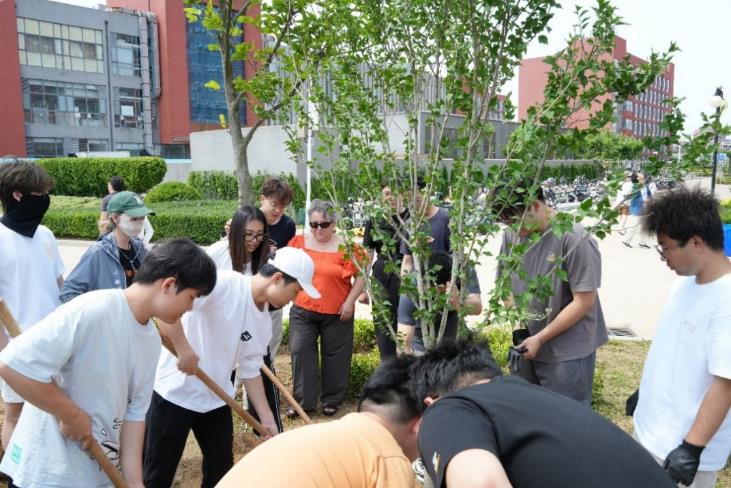 6月18日,一年一度校友林植树活动成功举办。威海国际学院院长韩冰、校区党委副书记林万梁、副院长白延雷、RIT中美项目副院长Julie Cecchini Cook、中外教师代表出席活动,与2025届毕业生代表共同种下青春之树。