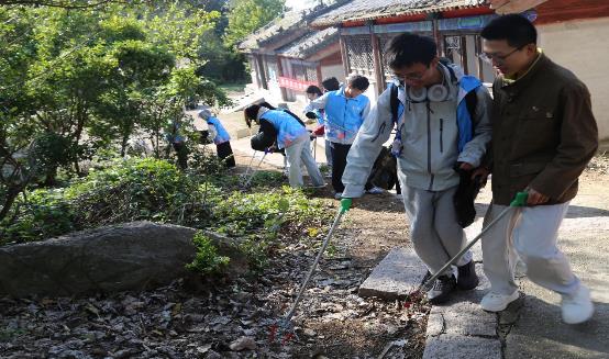 草木葱茏间,藏有游客遗落的垃圾。志愿者们立刻投入清理工作:有人躬身夹取石缝里的残屑,有人俯身捡拾草丛中的杂物,大家同步将垃圾分类装袋,配合默契,高效有序。