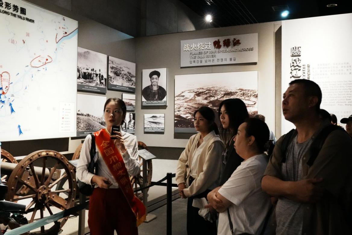 随后,同学们走进甲午战争陈列馆。致远舰残片、泛黄条约、清军旧装……一件件文物静默无声,却将大家带回百年前炮火纷飞的黄海。民族复兴的试卷上,写满“落后就要挨打”的批注,也写满“奋斗才能崛起”的答案。