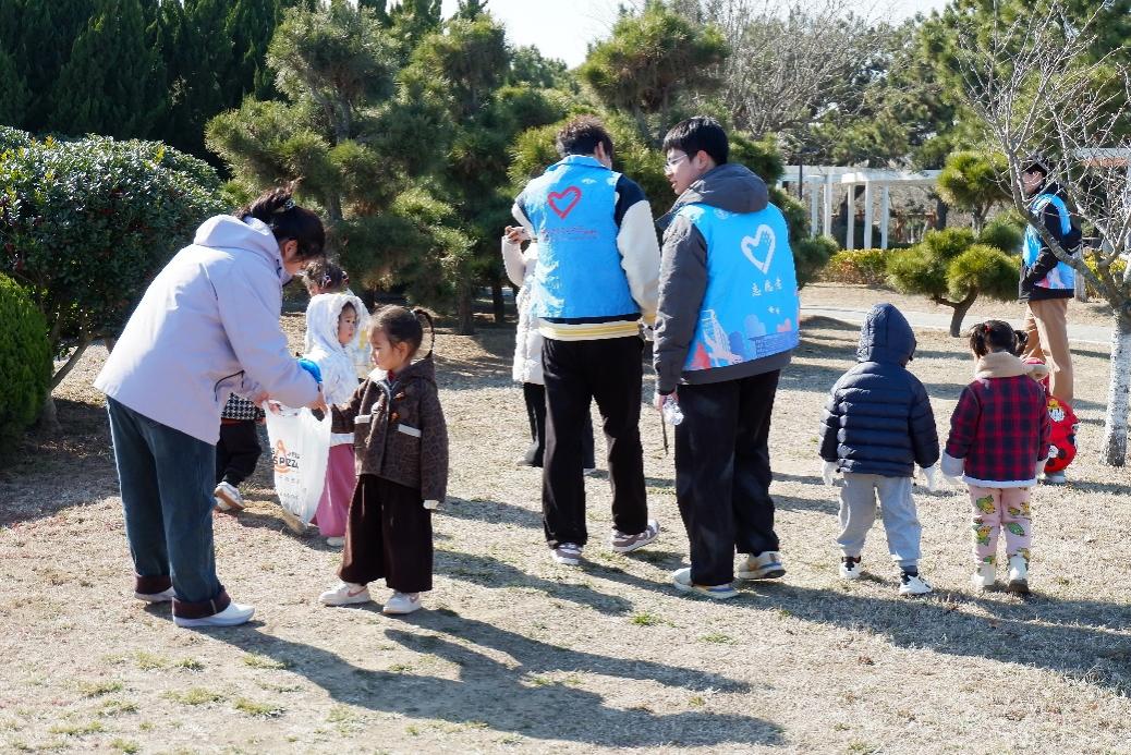On March 19, the environmental protection volunteer activity for kindergartens, organized by the Youth Volunteer Association of BJTU Weihai Campus, was held in Nanhai Park. This event organized 40 volunteers to join hands with over 30 children from the Nanhai New District Kindergarten to clean up the park. By integrating the inheritance of volunteer spirit into labor practice, it not only enlightened the children through experience but also provided a growth platform for college students to practice social responsibility and enhance their comprehensive abilities.