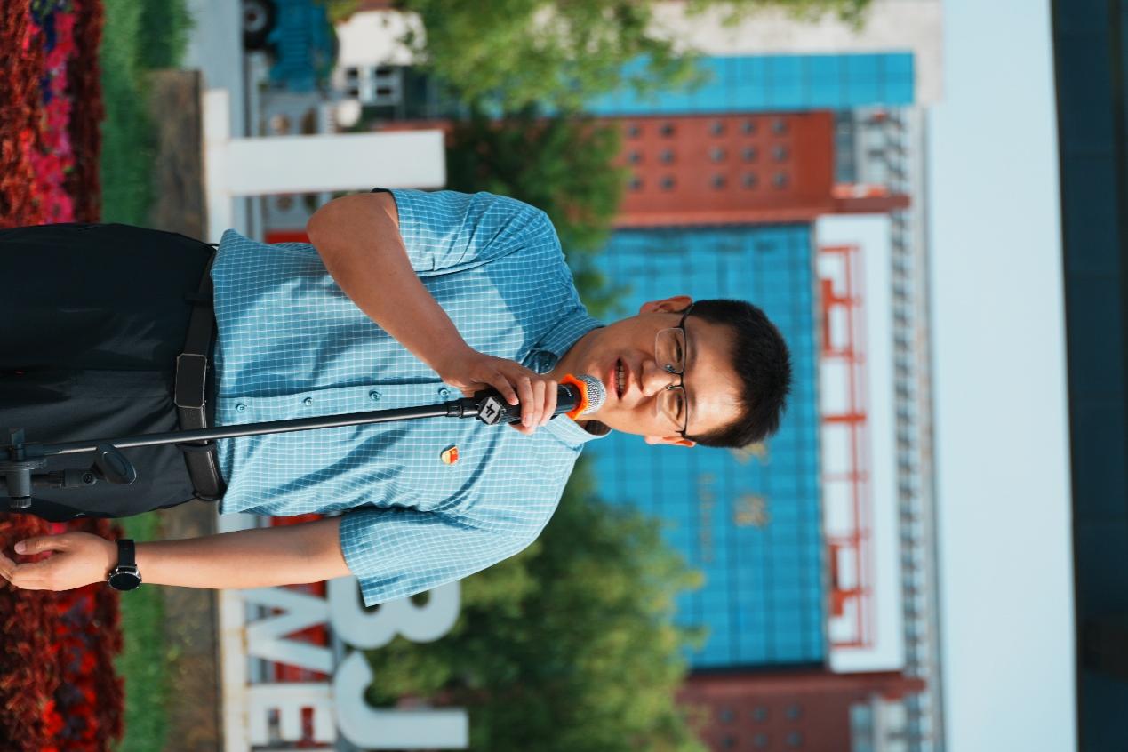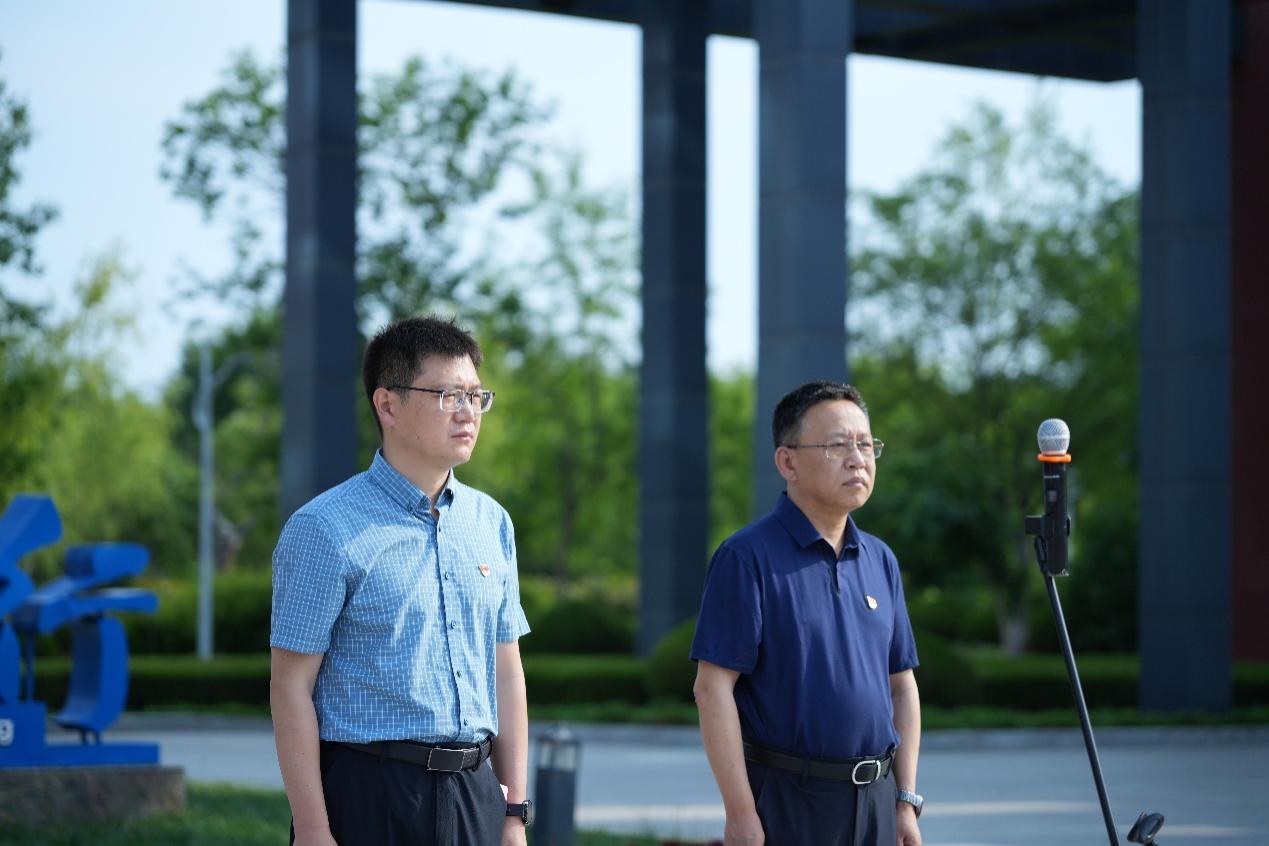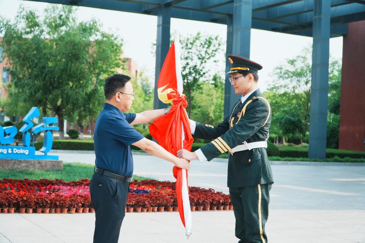 仪式中,韩冰向国旗班授旗。在庄严的国歌声中,五星红旗冉冉升起,全体师生肃立注目,齐唱国歌,以肃穆姿态表达对祖国的无限热爱与崇高敬意。