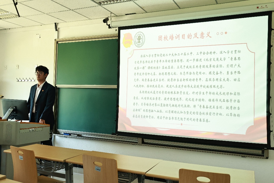 To thoroughly study and implement the guiding principles of the 20th CPC National Congress and the Second and Third Plenary Sessions of the 20th Central Committee, and to better understand General Secretary Xi Jinping’s important thoughts on youth work, mark a solid step toward advancing the implementation of the "First Lecture of Youth Political Education” Curriculum Framework of BJTU, the Youth League Committee of Weihai Campus held the opening ceremony of the 7th Youth League School and the “Navigator” Student Cadre Training Camp on the afternoon of May 18 at the Academic Exchange Center.