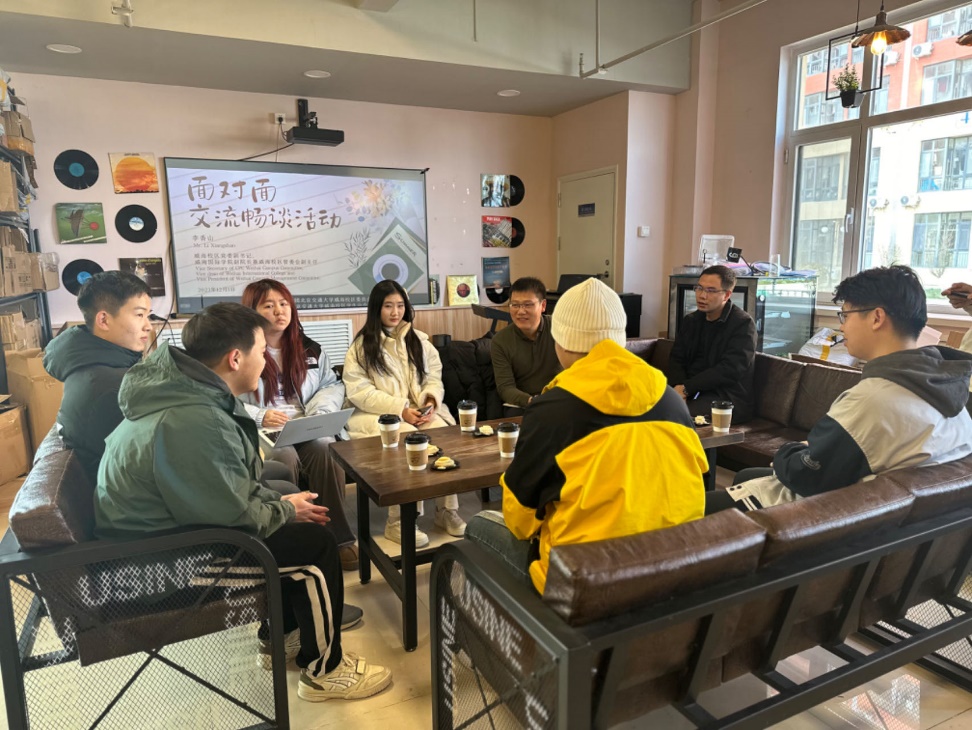 On Dec 1, Mr. LI Xiangshan, Vice Secretary of CPC Weihai Campus Committee, Vice dean of Weihai International College and Vice President of Weihai Campus Management Committee, attended the third session of "Face-to-face Communication and Conversation" activity of this semester,and interacted with the students, talking about learning and campus life, and discussing the development of the campus.
