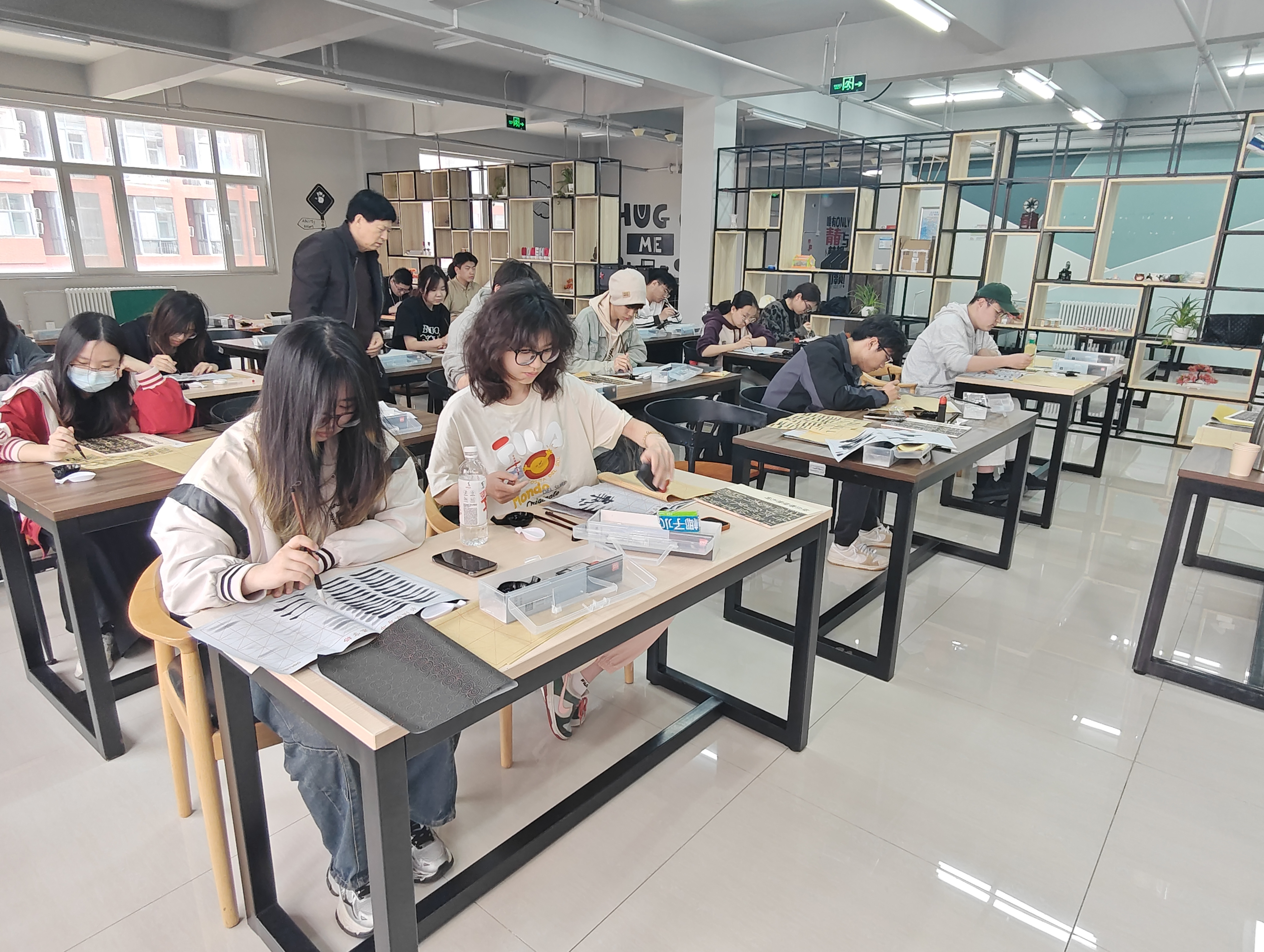 为传承中华优秀文化,讲好中国故事,4月18日,校区在天佑书院二楼举办了第三期“汉字之美·书法研习”活动,活动邀请曾任威海市硬笔书协常务理事、胶东书画家协会副会长的闫华春老师提供书法指导。活动吸引了众多对书法感兴趣的同学参与。