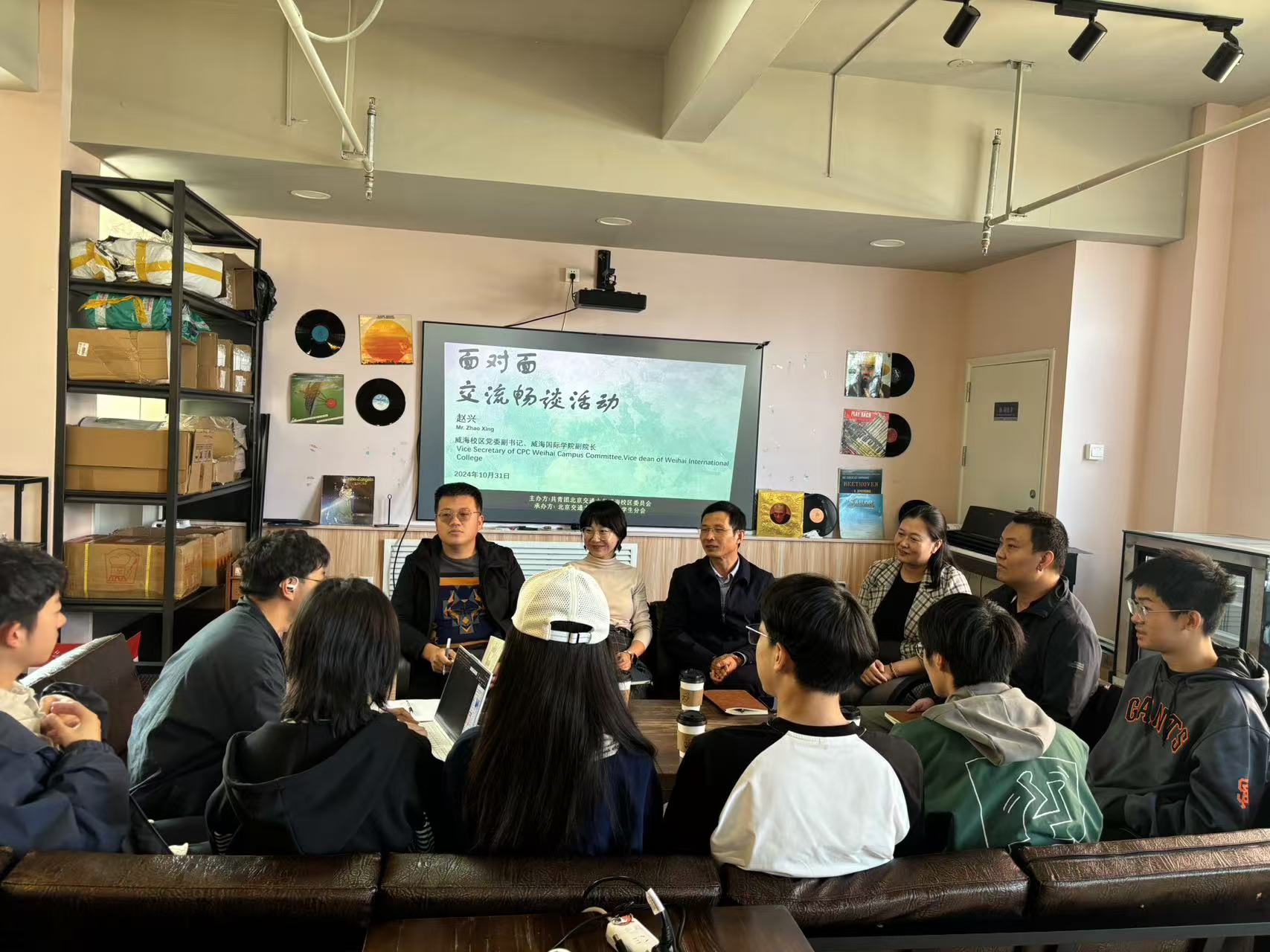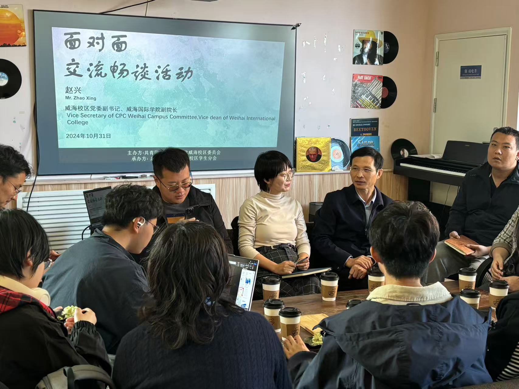 10月31日,威海校区党委副书记兼威海国际学院副院长赵兴老师,出席本学期第二期“面对面交流畅谈”活动,与同学们在校区北途咖啡厅互动交流,畅谈学习与生活,共议校区发展。