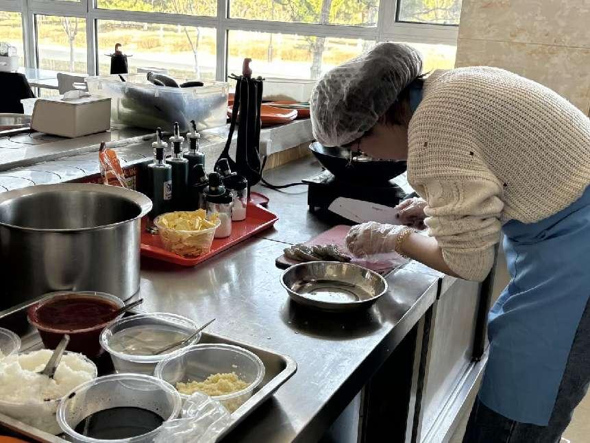 On Mar 22, “Let’s Get Cooking!” activity organized by the Student Union of Weihai Campus, was held at Campus Cafeteria. Under the guidance of the chefs, 11 students participated and experienced cooking dishes, cultivating students' life skills, and improving the awareness of labor.