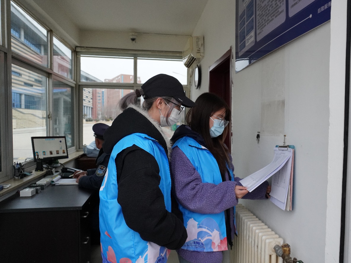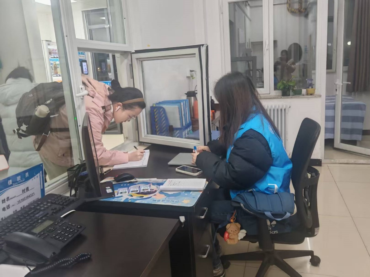志愿者协助宿管阿姨开展信息登记与检查工作