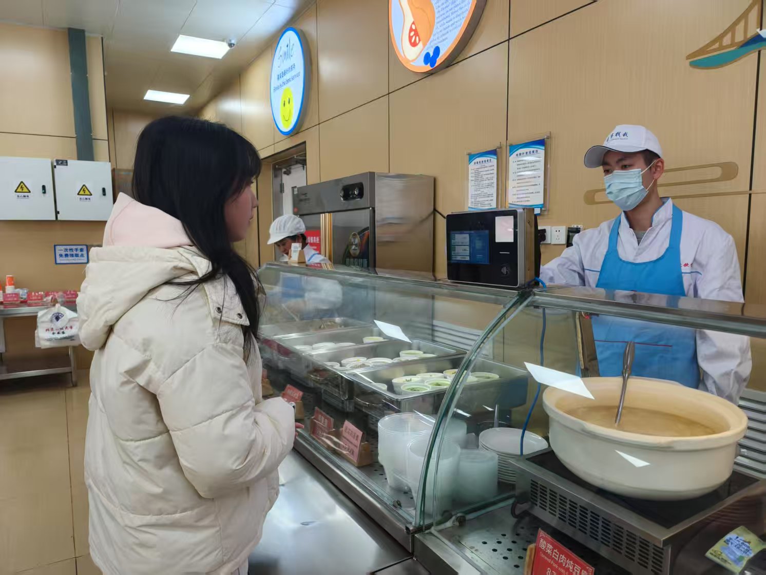 清真食堂工作人员对值岗志愿者进行培训
