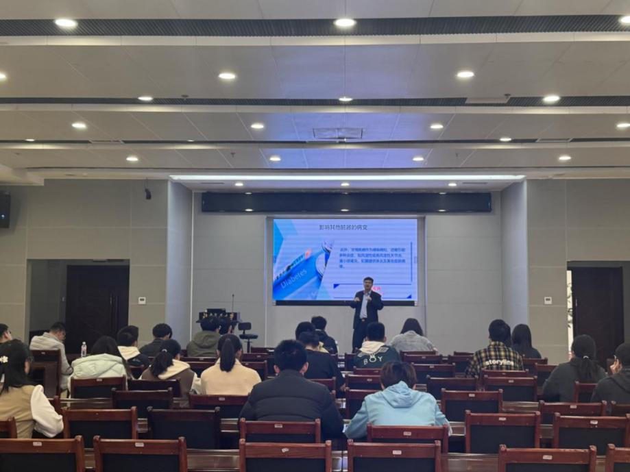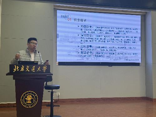 随后,郭俊峰副主任在中医主题讲座中重点讲解了养生之道。他引用《黄帝内经》“饮食有节,起居有常”的理念,指出当前师生群体普遍存在的三大健康问题:久坐导致的颈腰椎问题、饮食不规律引发的消化不适,以及缺乏运动带来的亚健康状态。针对这些问题,他给出具体建议:饮食要定时定量,营养均衡;日常起居要保证规律,避免熬夜;日常注意保持正确坐姿,避免久坐不动。