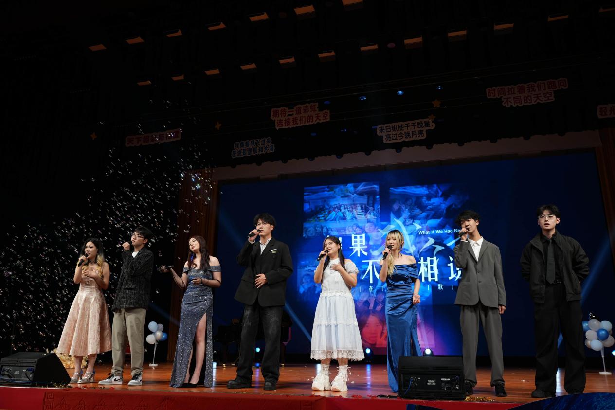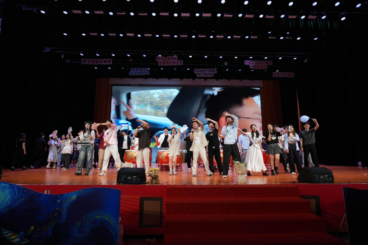 晚会现场,中外三方教师代表、2025届毕业生以及部分毕业生家长齐聚一堂,共同见证了这一难忘时刻。百余名演职人员经过精心筹备与排练,为线上线下千余名观众献上了一场视听盛宴。