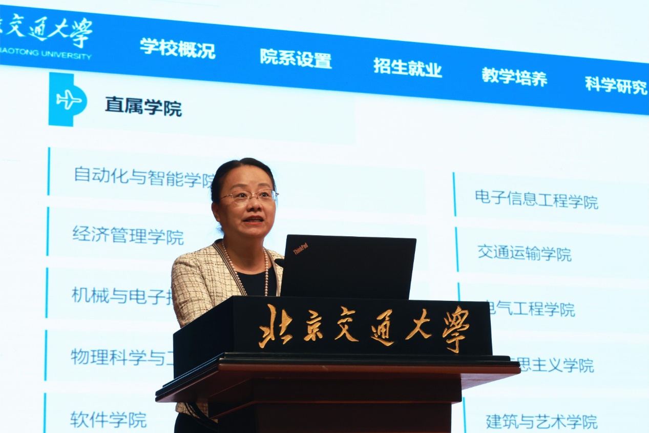 刘颖详细介绍了学校历史沿革、校区现状、学习生活、校园文化与人才培养、招生、录取等方面的情况。她对历年毕业生的学生学业发展情况进行了分析,建议同学们尽快确定新的目标并认真阅读《学生手册》,了解大学管理的各项规章制度,在大学学习、生活、情感等方面遇到问题时,主动寻求帮助,成为能够站在国际舞台上妥善处理各种复杂关系、有能力讲好中国故事的国际化高级专业人才。