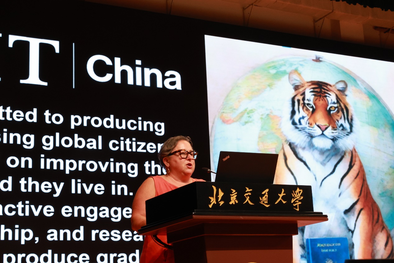 Julie Cecchini Cook介绍了RIT中国的五项办学宗旨即:团结(Togetherness)、包容(Inclusion)、卓越(Greatness)、毅力(Endurance)、责任(Responsibility)。她表示RIT中国将为营造富有创造力、积极和谐的校园氛围不断努力。