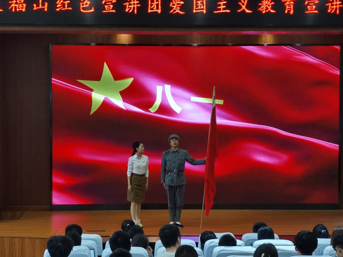 天福山红色宣讲团成员聚焦天福山起义、奋斗筑梦等主题,通过舞台剧、诗朗诵等形式,深情演绎了《旗帜》《成为那道光》《传承荣光 赓续前行》《在路上》等故事。扣人心弦的语言、丰富详实的史料、催人奋进的事迹,将浓厚的爱国情怀转换为直观的视听画面,带领大家感受中国革命的伟大历程,深刻体会各领域各行业敢想敢干、敢为人先的改革创新精神。