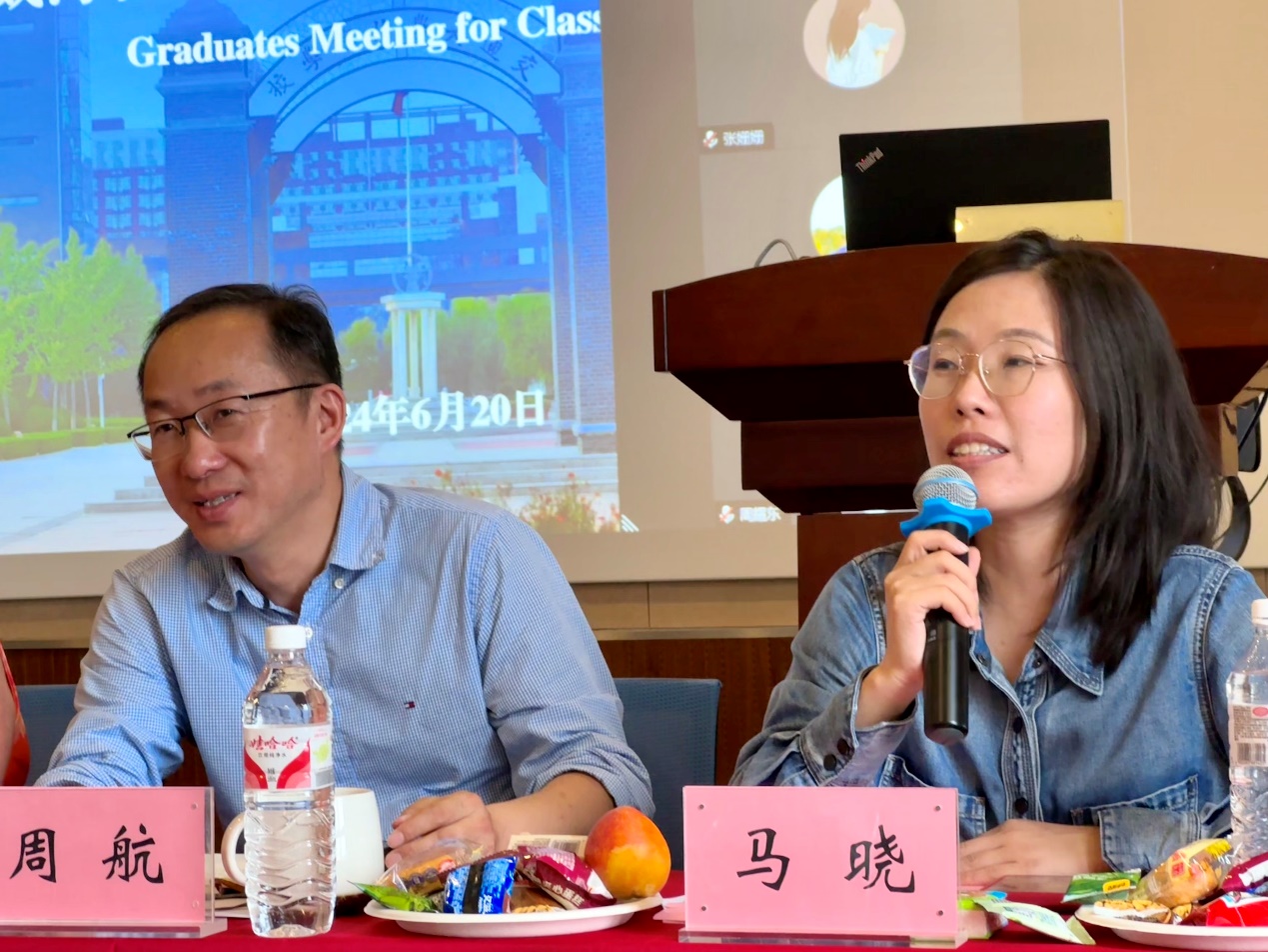 周航与毕业生代表进行热烈的交流互动,听取同学们在学校人才培养方案、课程设置等方面工作的建议。马晓对毕业生的未来发展表达了美好祝福,针对同学们提出的意见和建议,将认真总结梳理,加快改进落实,更好地服务于同学们的成长发展。